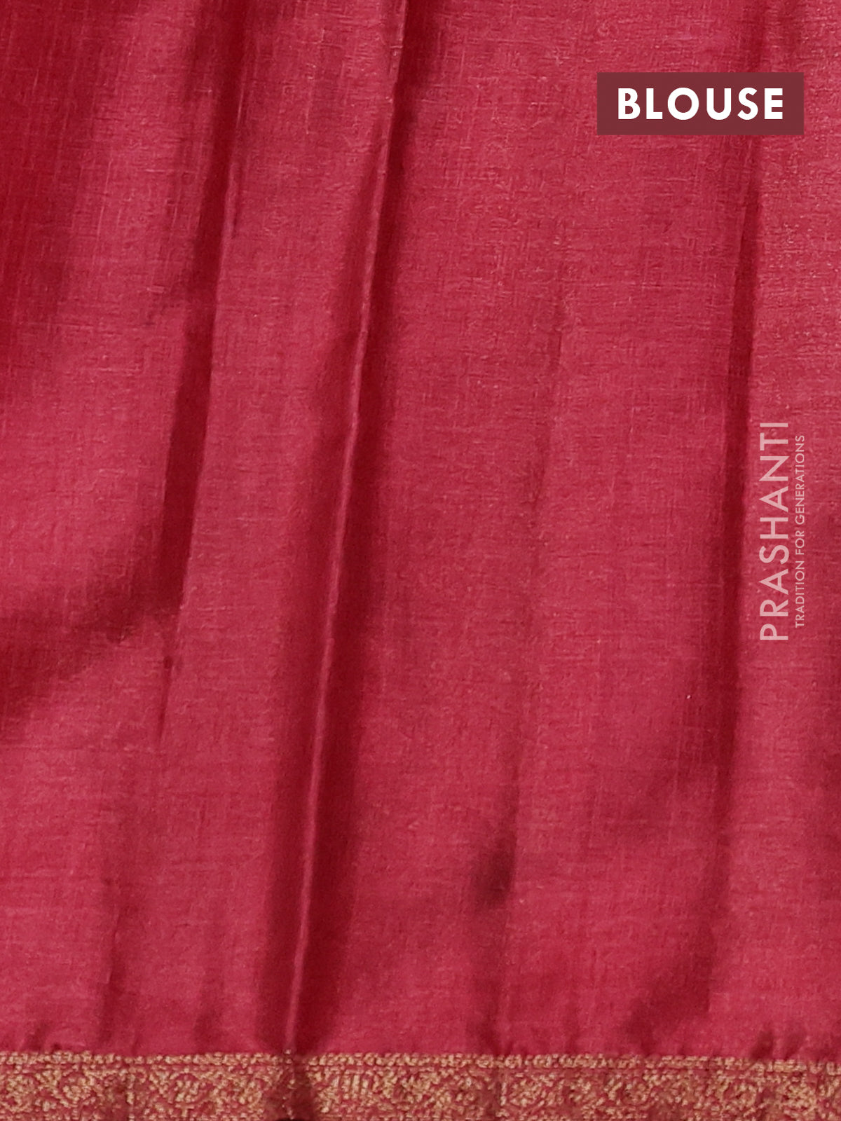 Banarasi tussar silk saree blue and red with thread & zari woven floral buttas and woven border