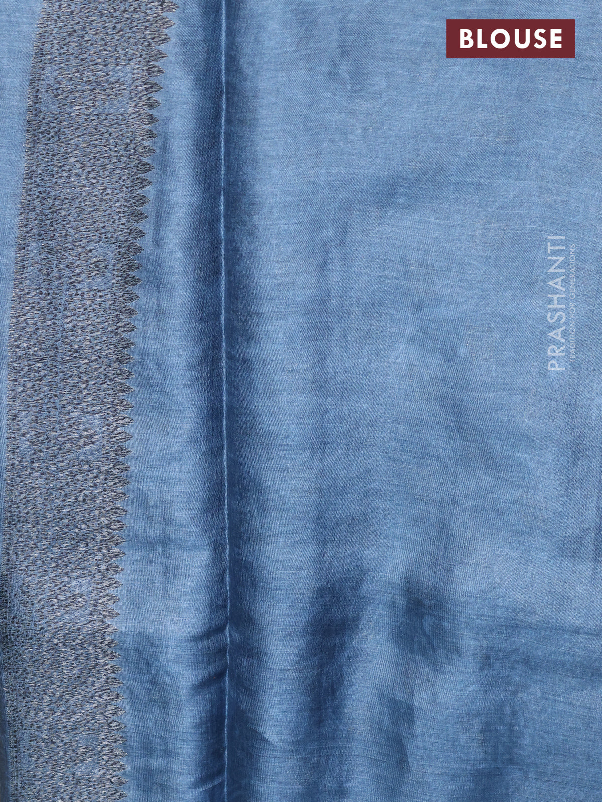 Banarasi tussar silk saree pastel blue with woven buttas & digital prints in borderless style