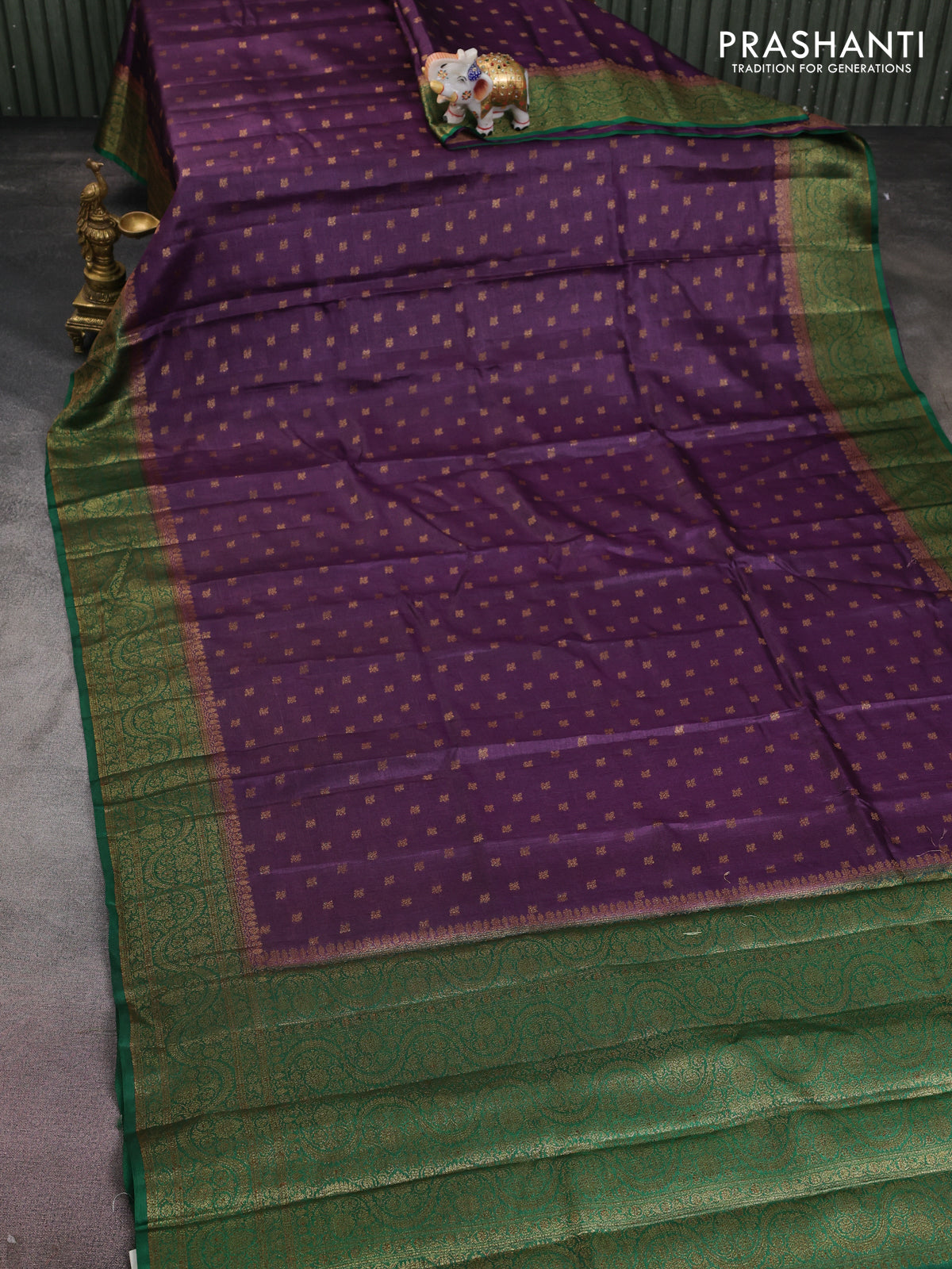 Banarasi tussar silk saree purple and green with allover thread & zari woven buttas and woven border