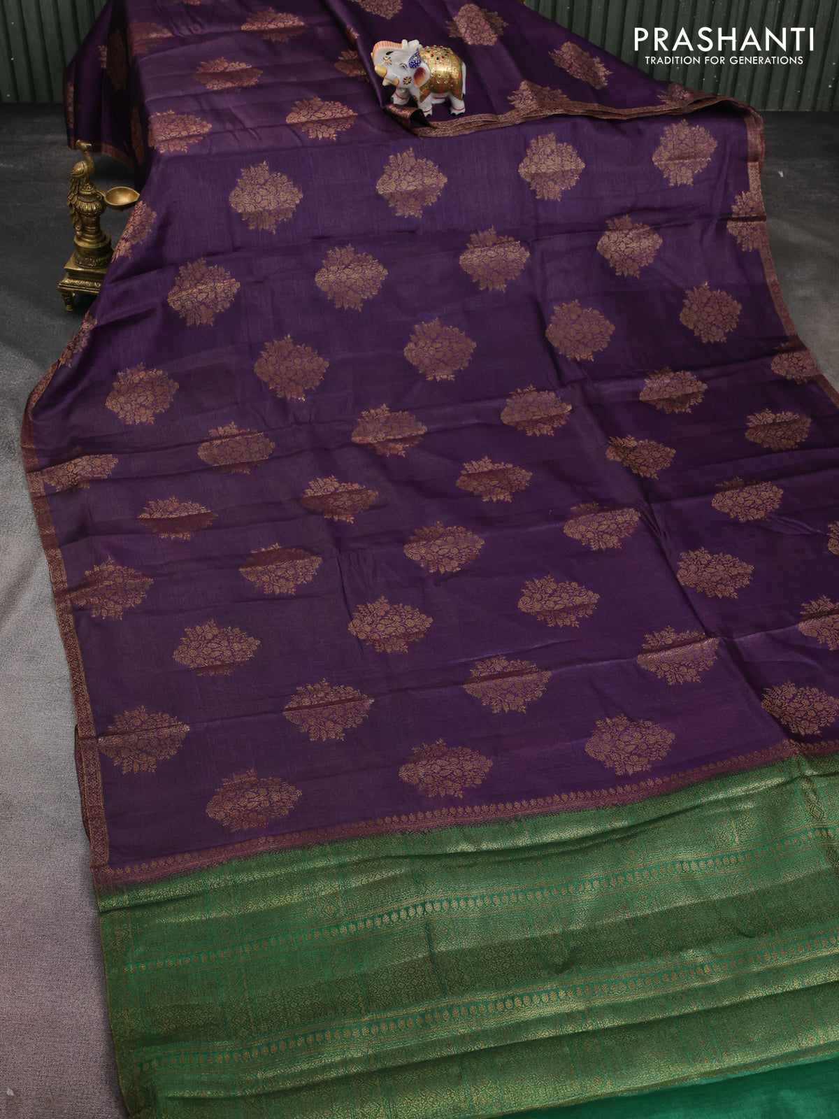 Banarasi tussar silk saree purple and green with thread & zari woven floral buttas and woven border