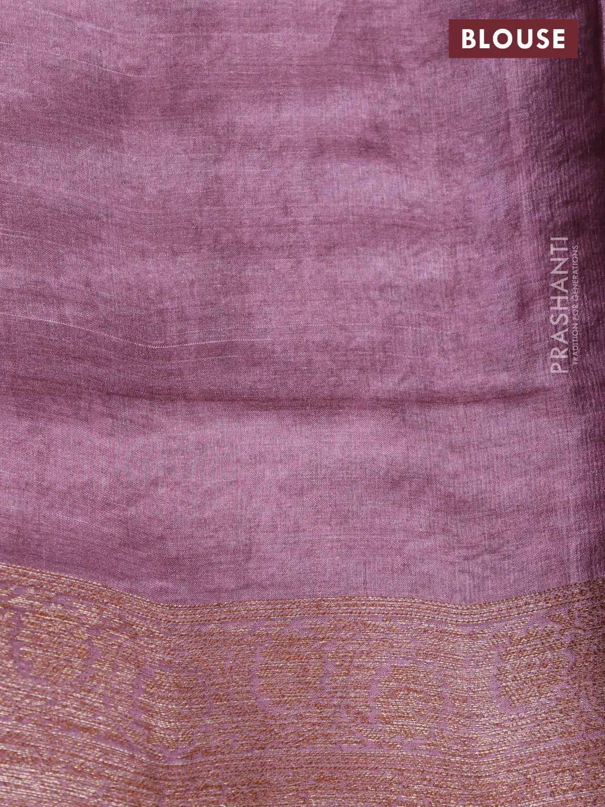 Banarasi tussar silk saree rosey brown with woven buttas & floral digital prints and woven border