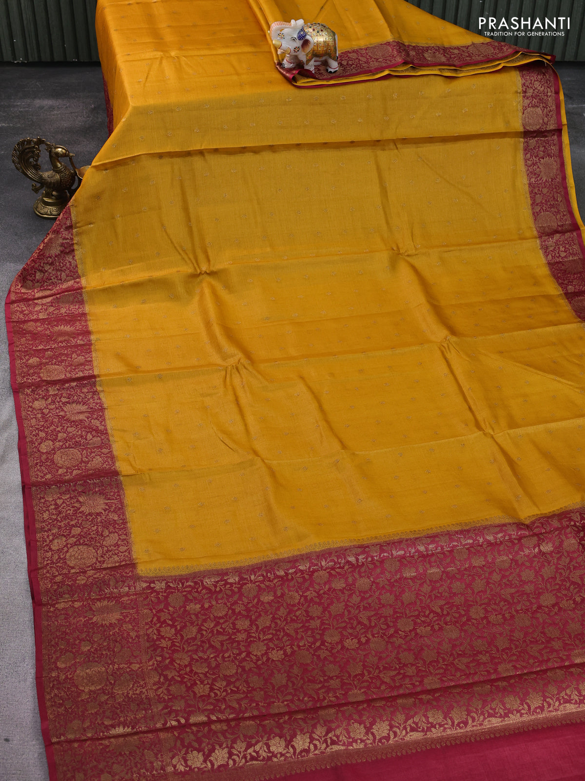 Banarasi tussar silk saree yellow and pink with allover thread & zari woven buttas and woven border