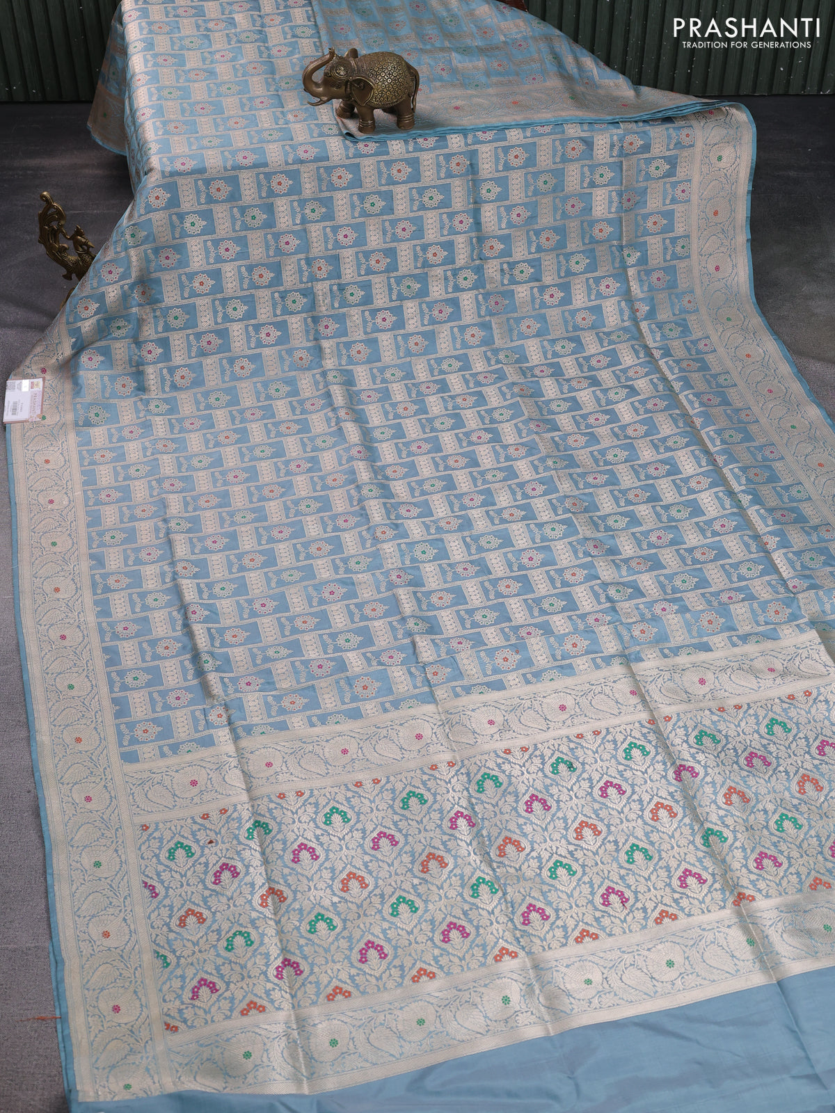 Banarasi uppada silk saree pastel blue with allover zari woven brocade weaves and zari woven border