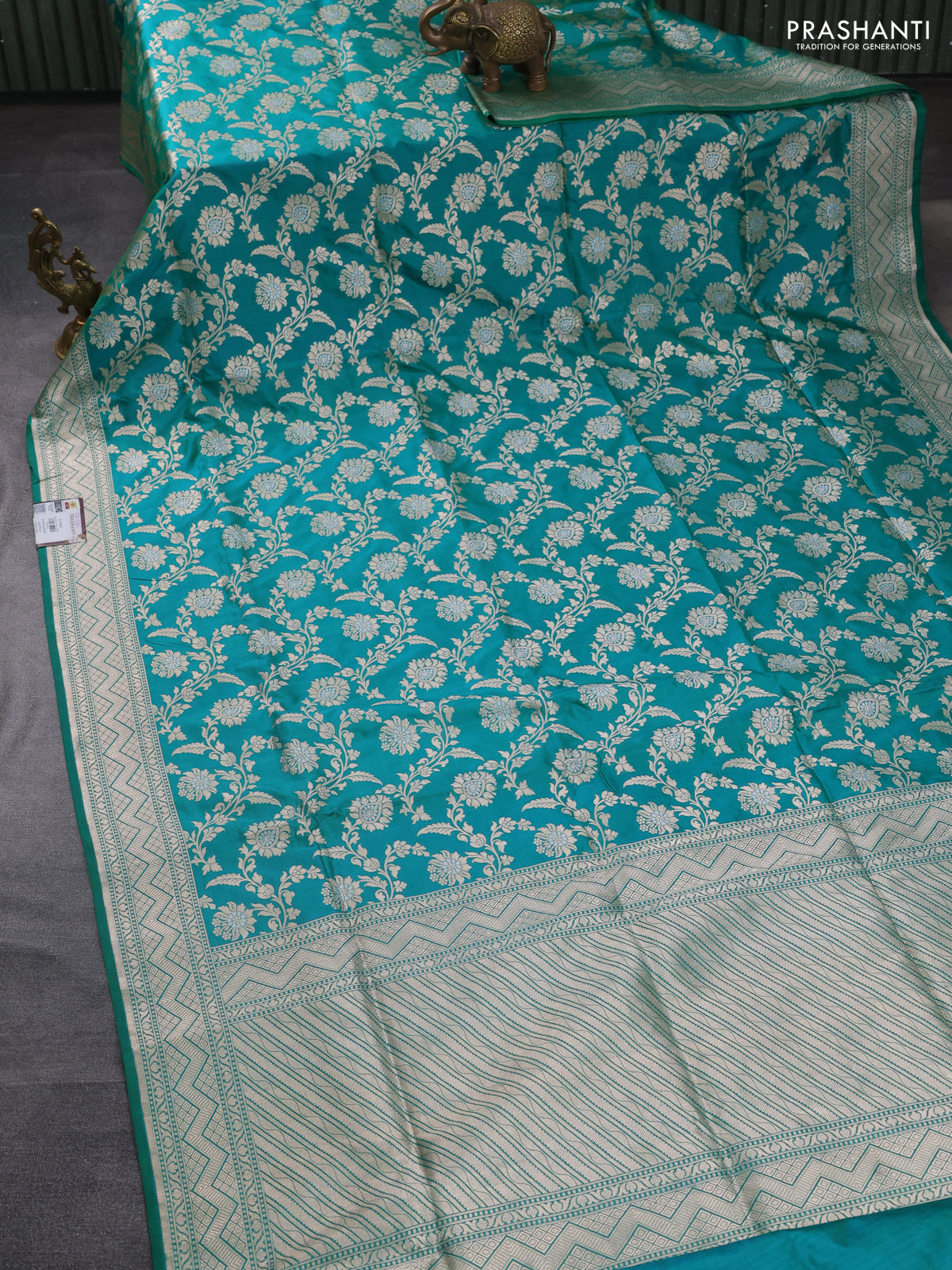 Banarasi uppada silk saree teal green with allover zari woven brocade weaves and zari woven border