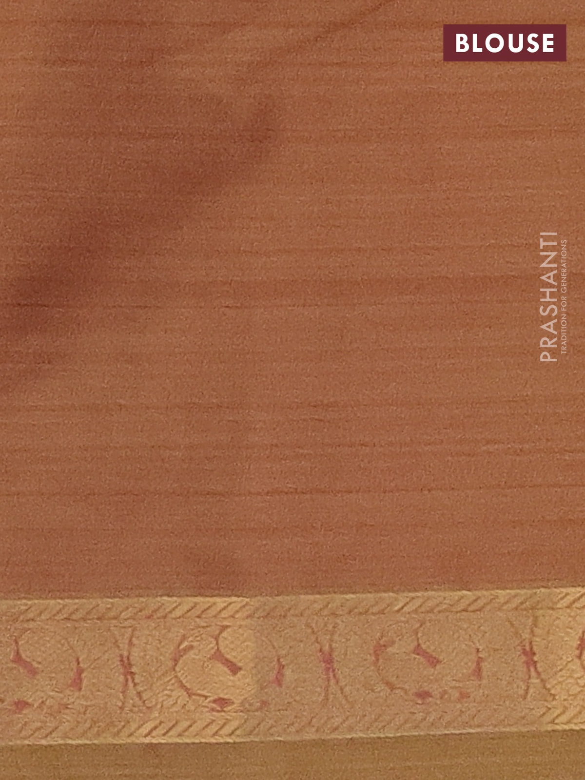 Bangalori semi silk saree pastel peach and mehendi green with allover ikat weaves and zari woven border