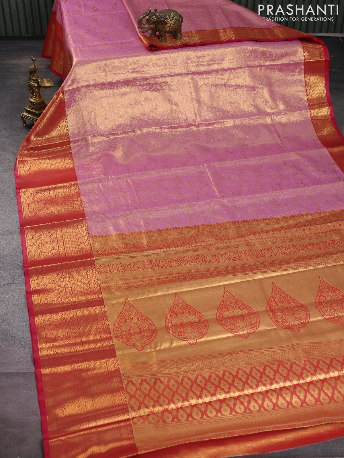 Bangalori tissue silk saree light pink and pink with allover zari woven brocade weaves and long zari woven border