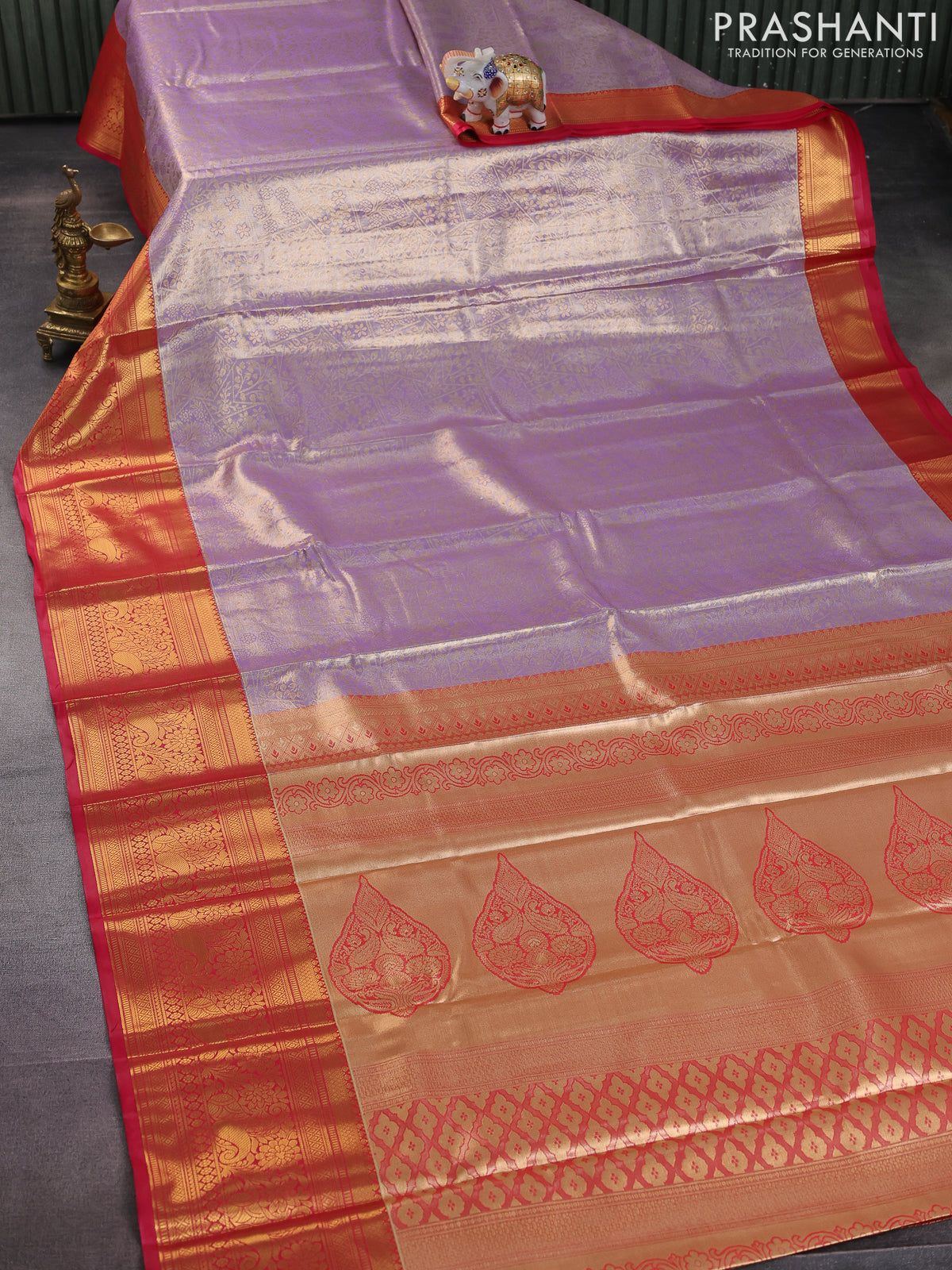 Bangalori tissue silk saree mild lavender and reddish pink with allover zari woven brocade weaves and long zari woven border