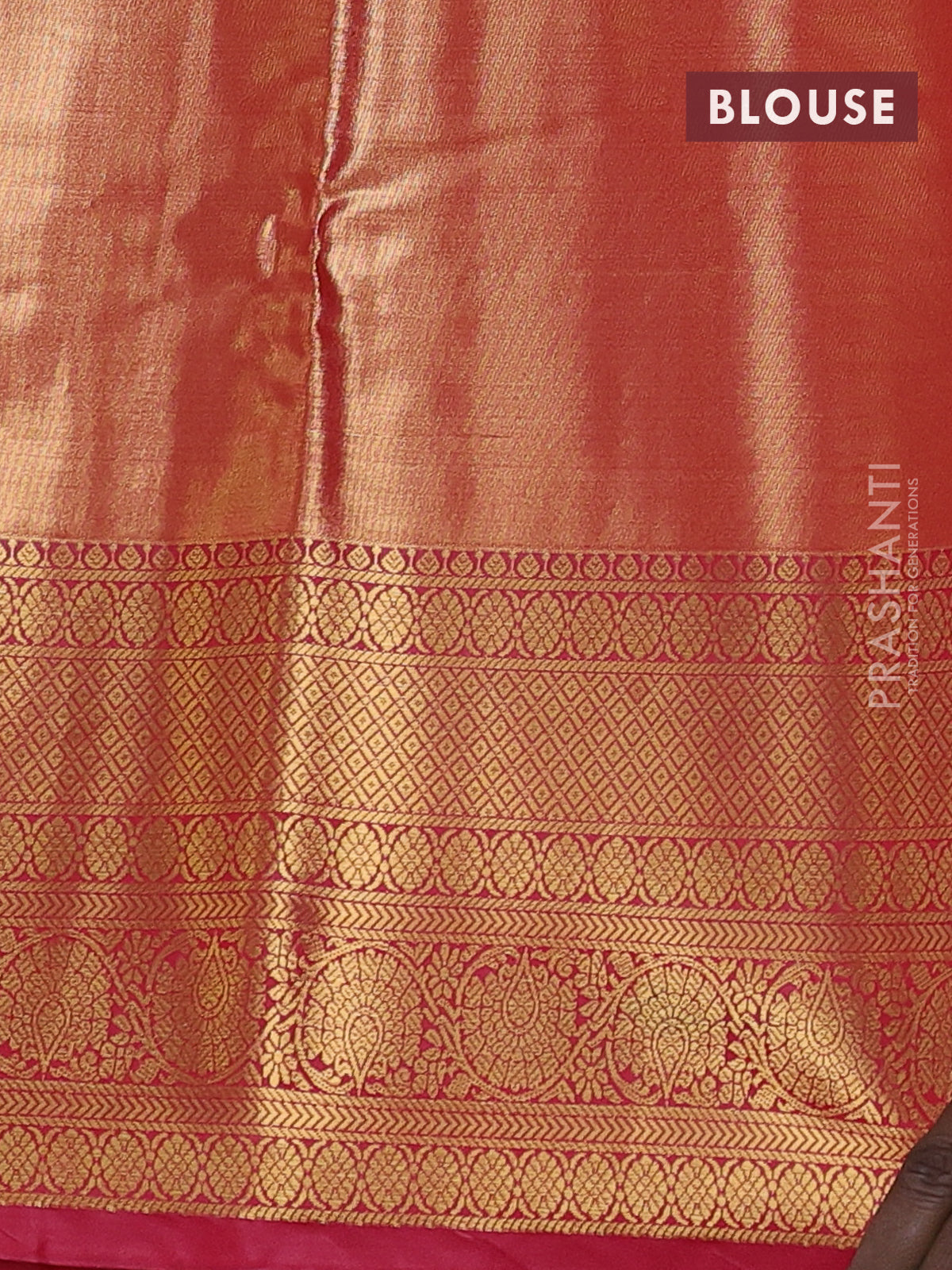 Bangalori tissue silk saree pastel green shade and reddish pink with allover zari woven brocade weaves and long zari woven border