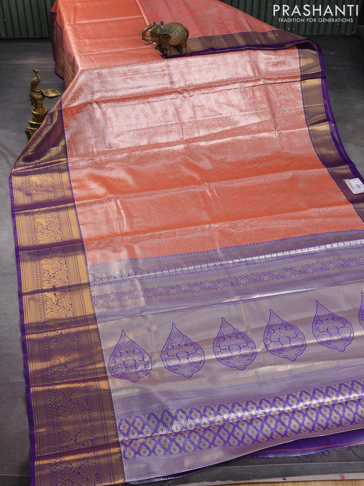 Bangalori tissue silk saree red and violet with allover zari woven brocade weaves and long zari woven border