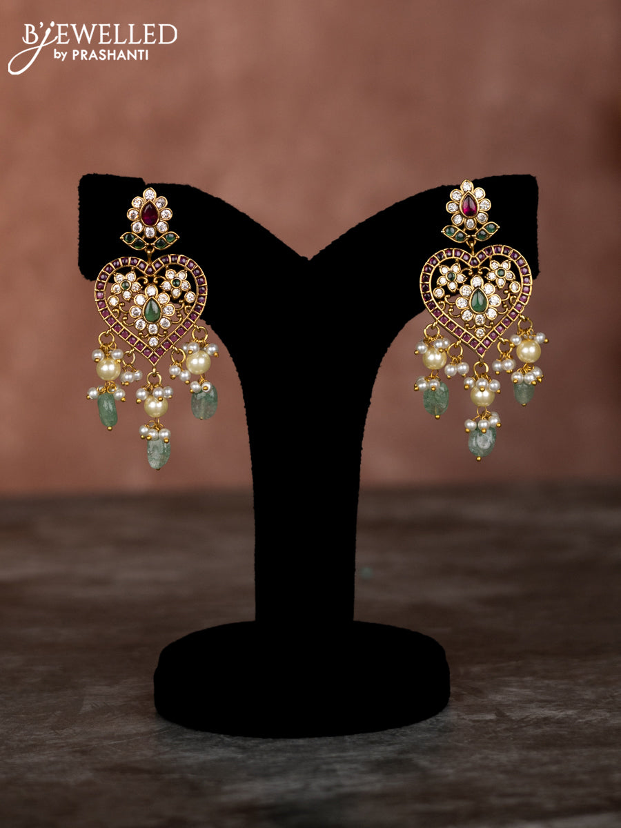 Beaded multilayer necklace heart shape pendant with kemp & cz stones and pearl hangings