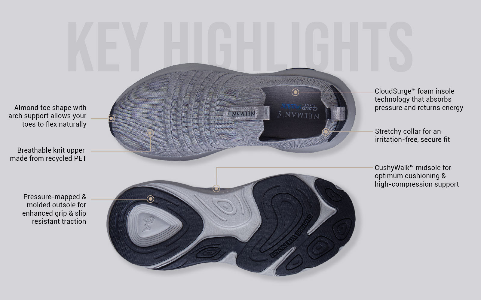 Still snoozing your morning alarms? Dragging yourself to walks like it’s an early morning meeting? It’s not you; it’s your shoes. Meet the Begin Walk ‘Breeze’. With a breathable knit upper, energy-returning insole, responsive cushioning & compression midsole, and a pressure-mapped outsole, these shoes offer you the most comfortable walking experience, all while managing the stiffness and stress on your joints & muscles.