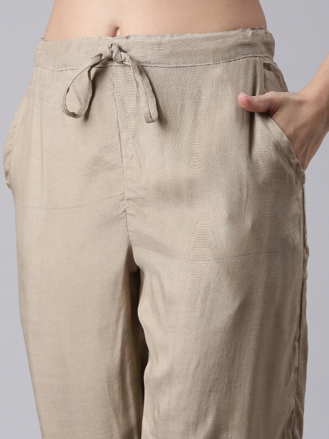 This beige Chanderi three-piece set features delicate handwork that adds an elegant, timeless charm to your wardrobe. Crafted from breathable fabric, it ensures comfort throughout the day while its intricate detailing elevates your look for both casual and festive occasions. Perfect for those seeking a blend of tradition and style, this set is a versatile addition that supports your desire for effortless grace.
