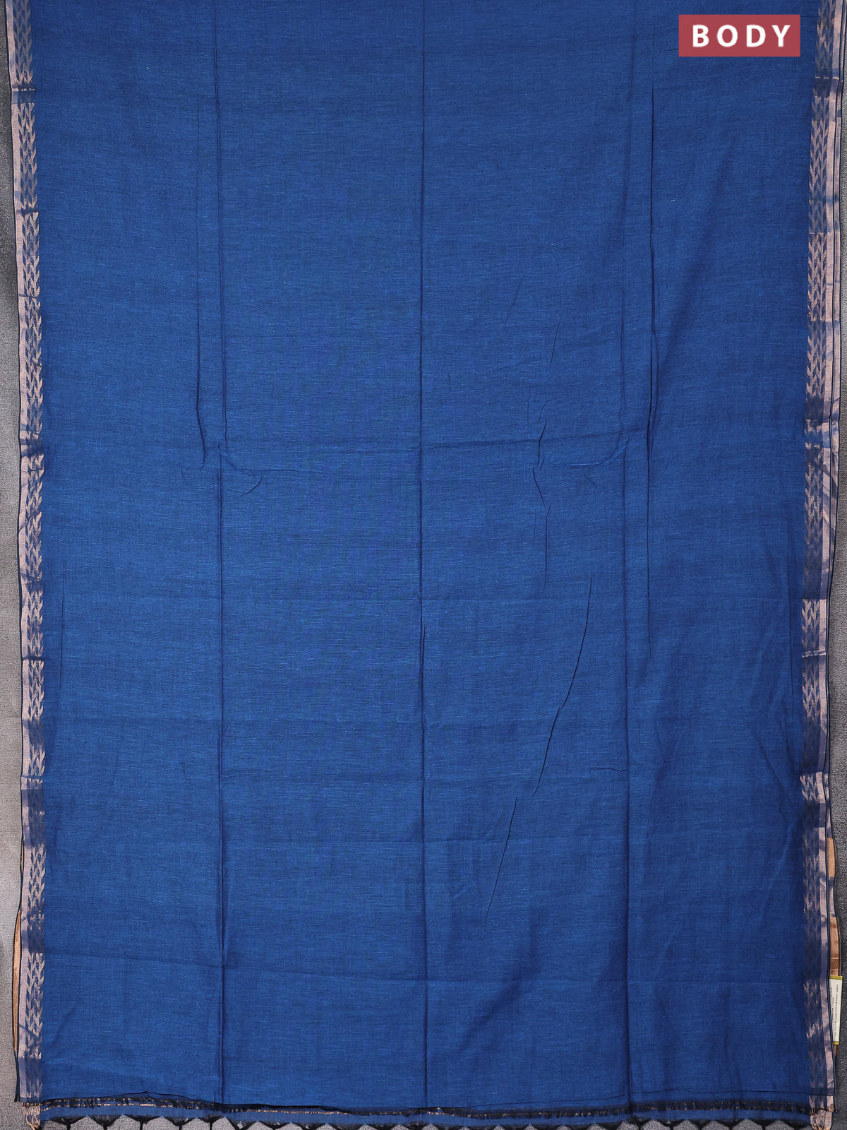 Bengal soft cotton saree cs blue with plain body and zari woven border