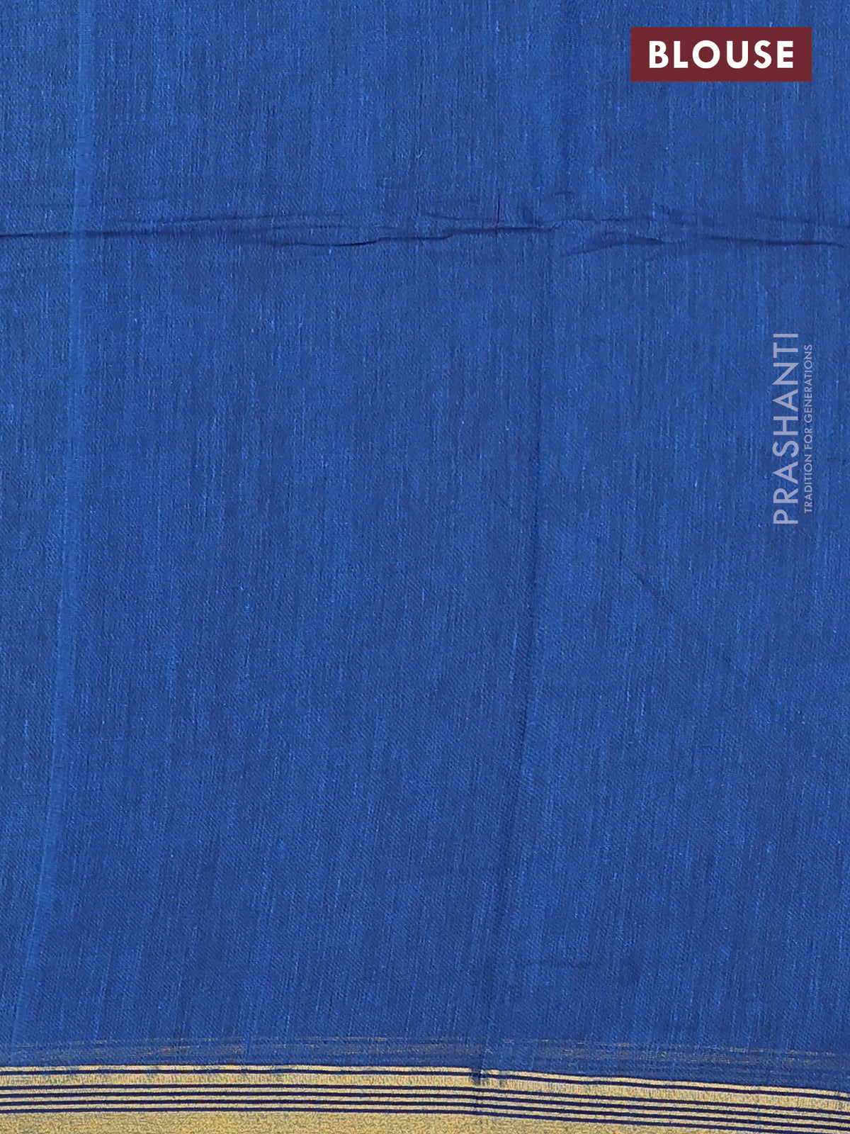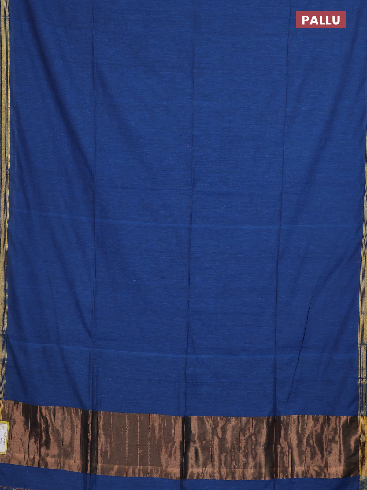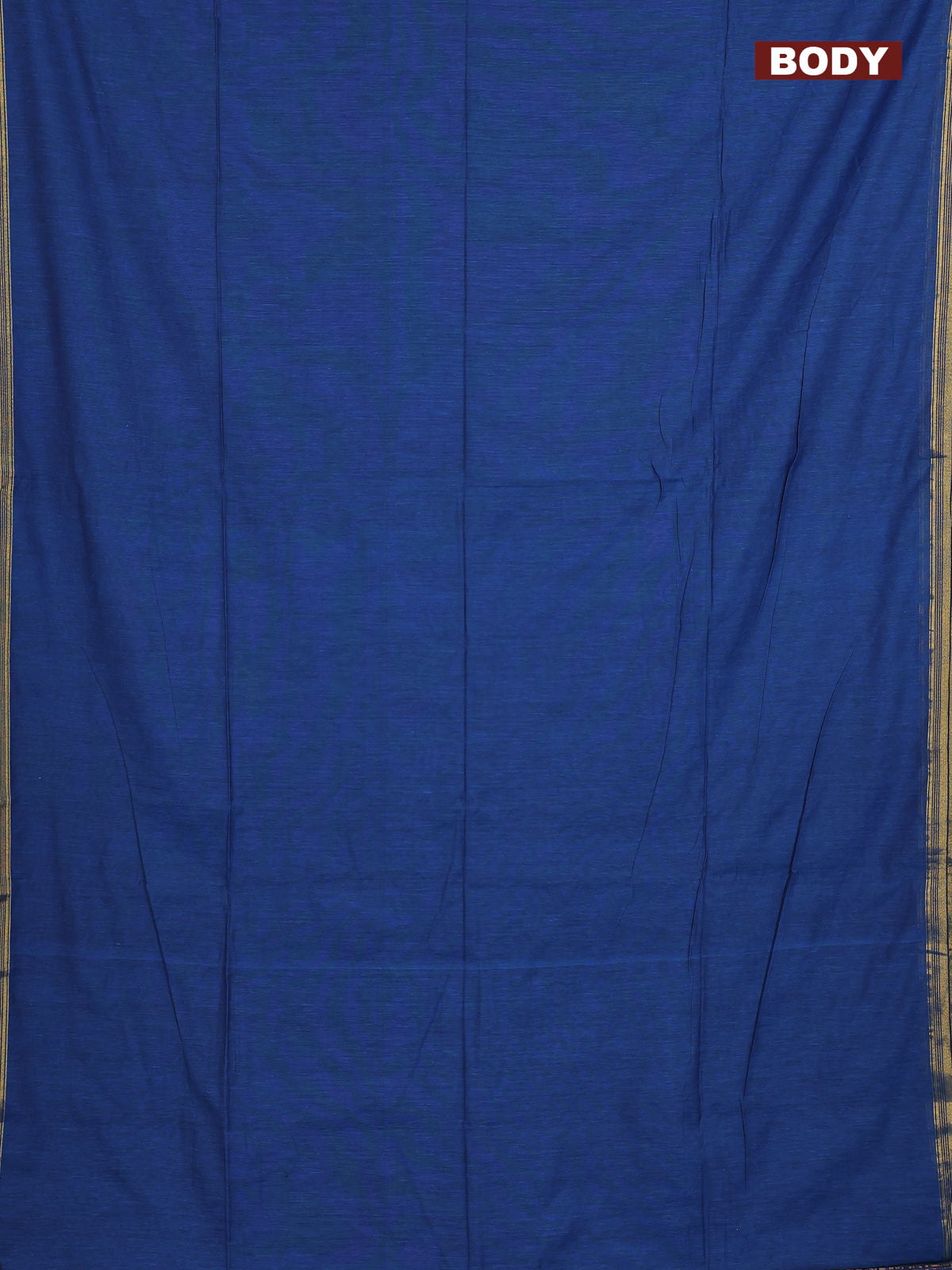 Bengal soft cotton saree cs blue with plain body and zari woven piping border