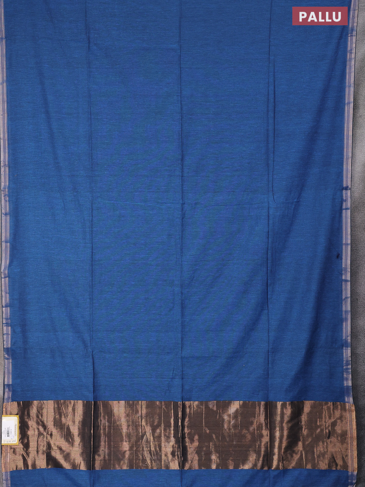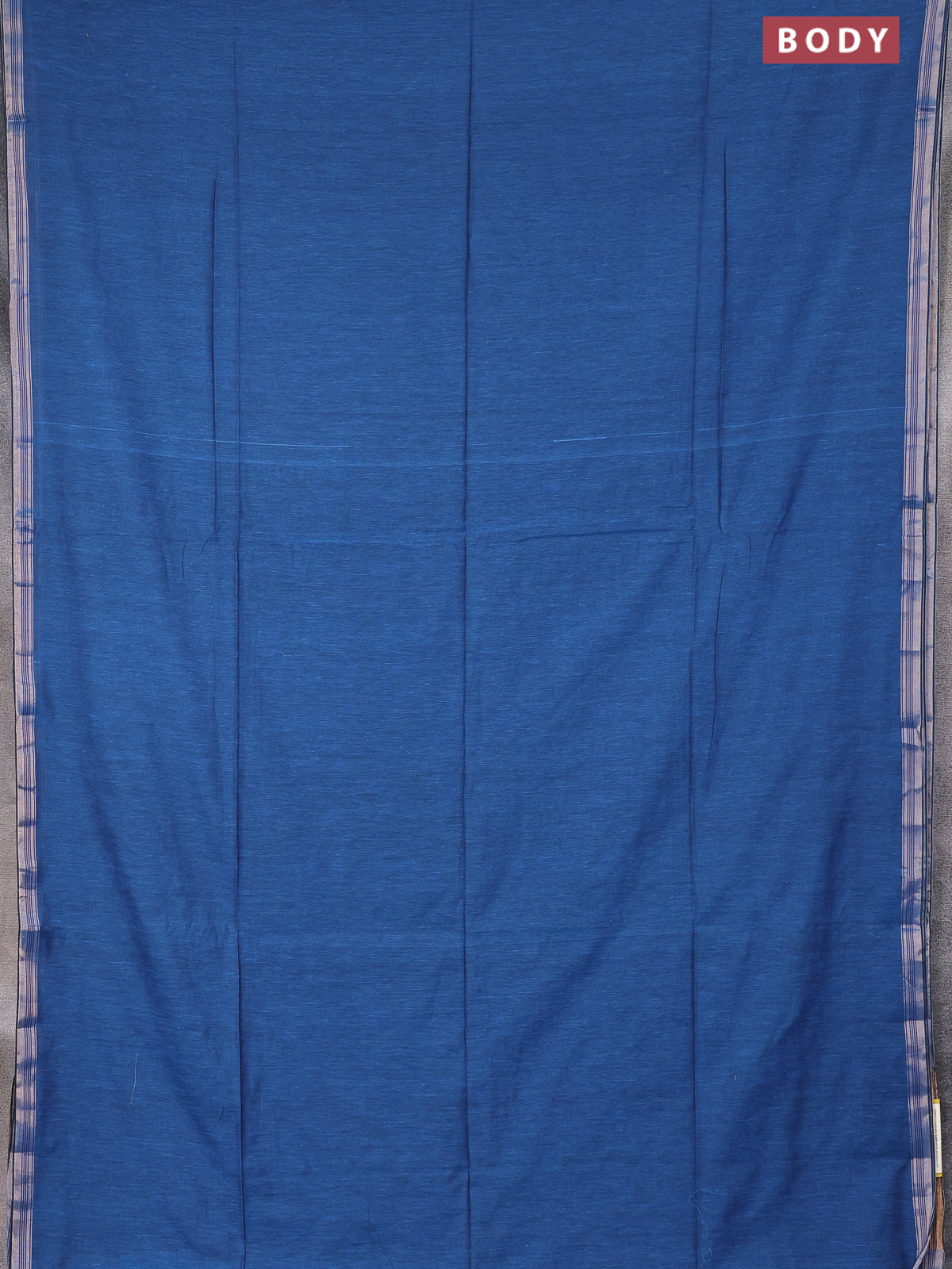 Bengal soft cotton saree cs blue with plain body and zari woven piping border