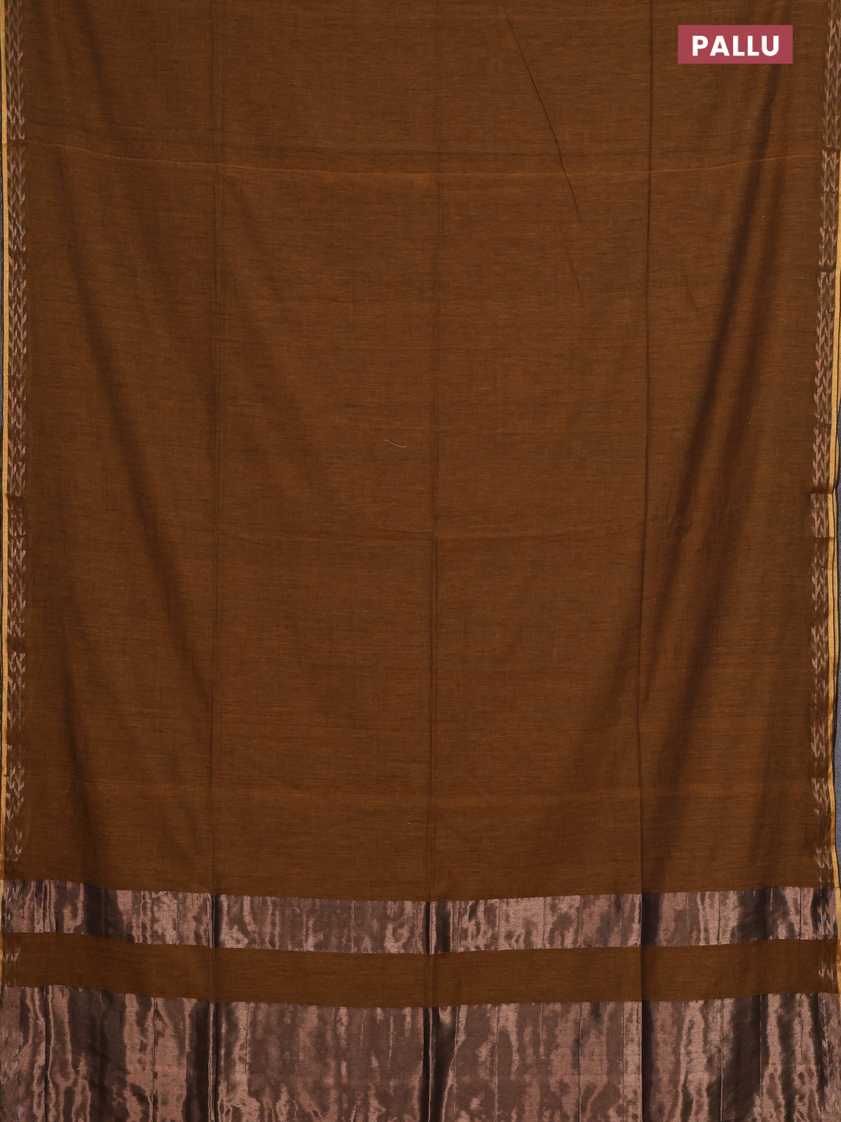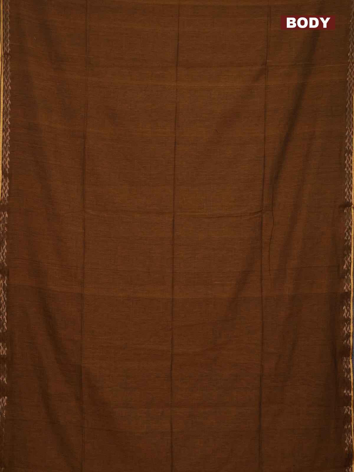 Bengal soft cotton saree dark mustard and green with plain body and zari woven border