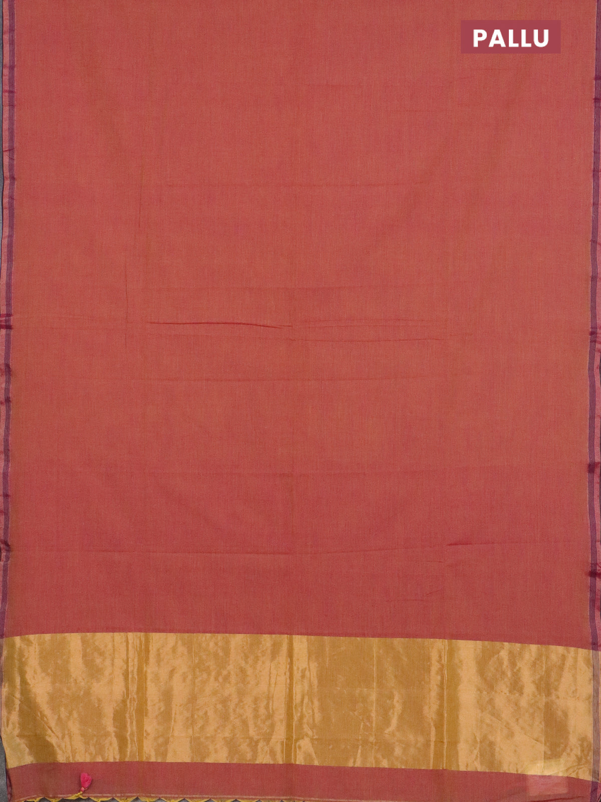 Bengal soft cotton saree dual shade of pinkish yellow with plain body and zari woven border