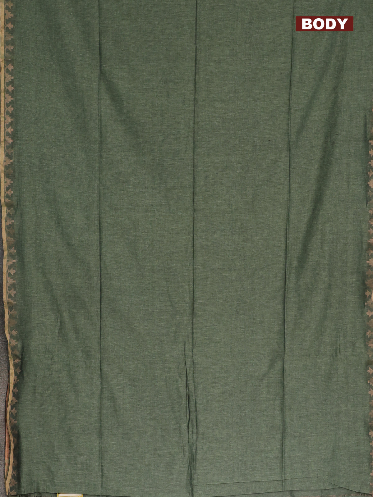 Bengal soft cotton saree green shade and violet with plain body and zari woven border