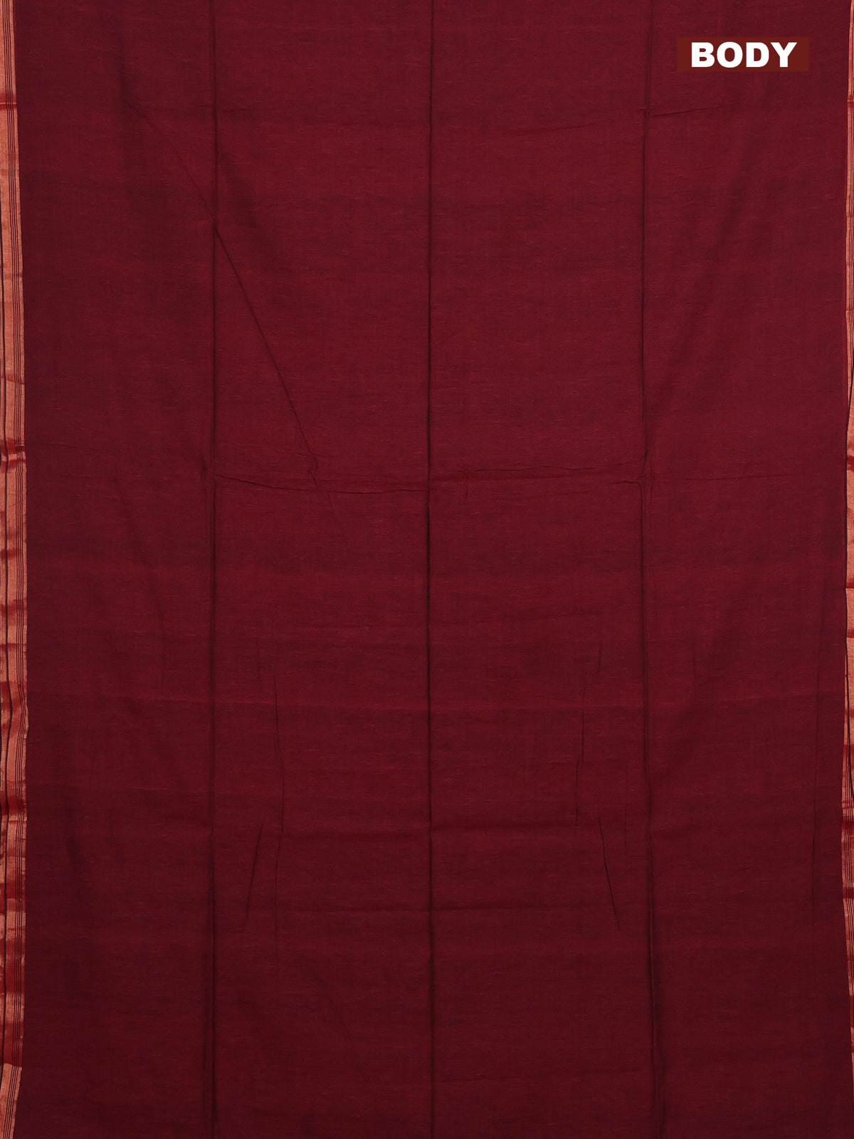 Bengal soft cotton saree maroon and yellow with plain body and zari woven border