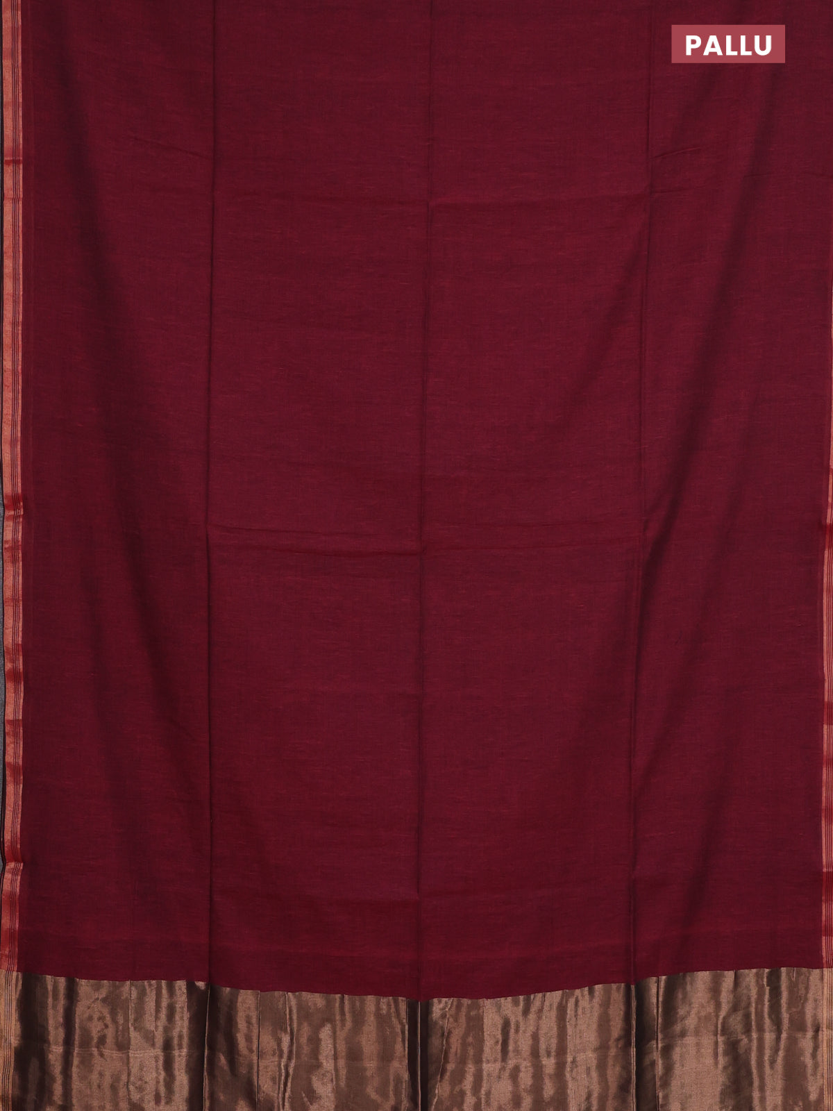 Bengal soft cotton saree maroon and yellow with plain body and zari woven border