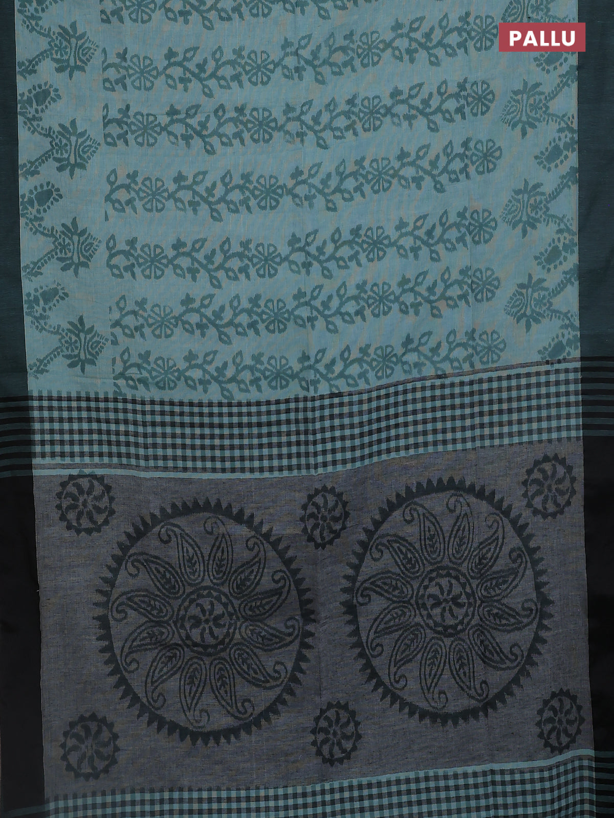 Bengal soft cotton saree teal blue and grey with allover weaves and simple border