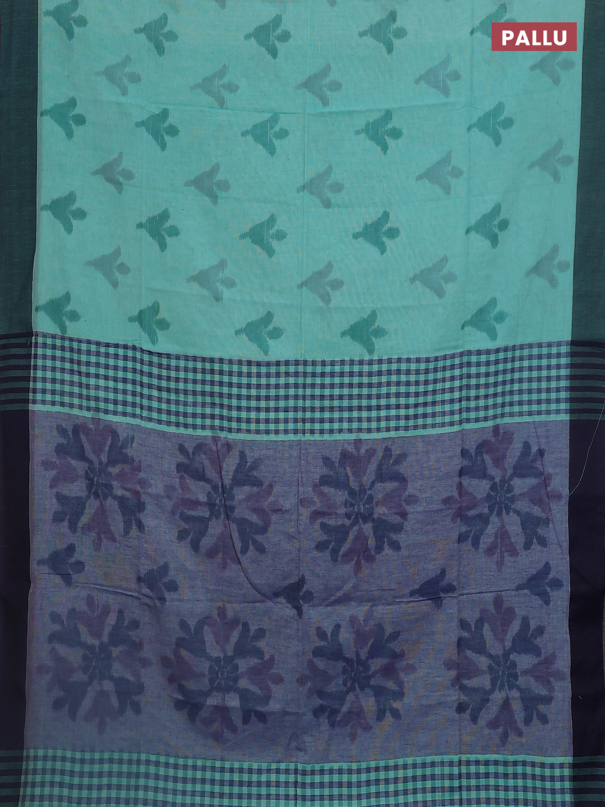 Bengal soft cotton saree teal green and blue with allover butta weaves and simple border