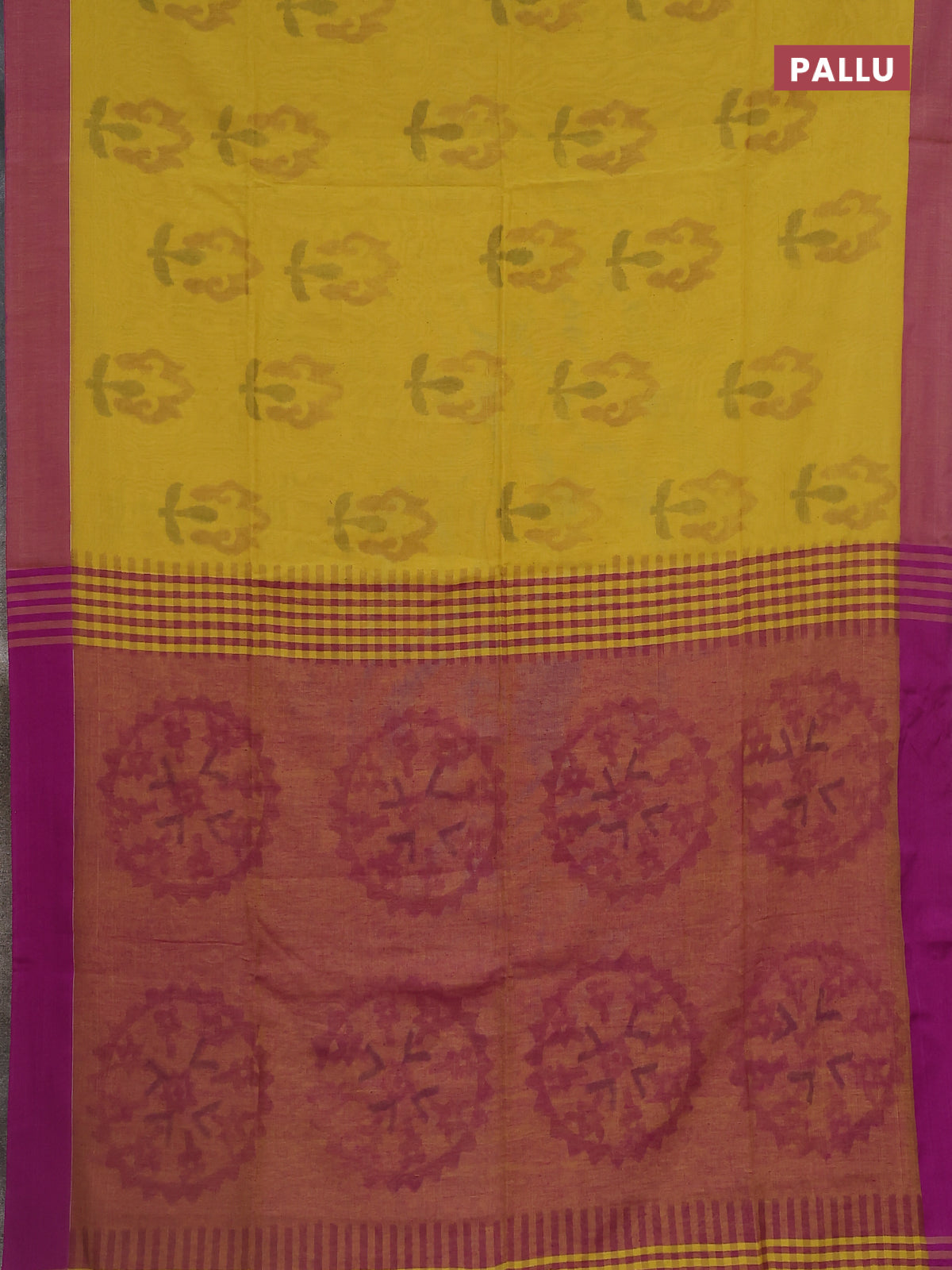 Bengal soft cotton saree yellow and purple with allover weaves and simple border