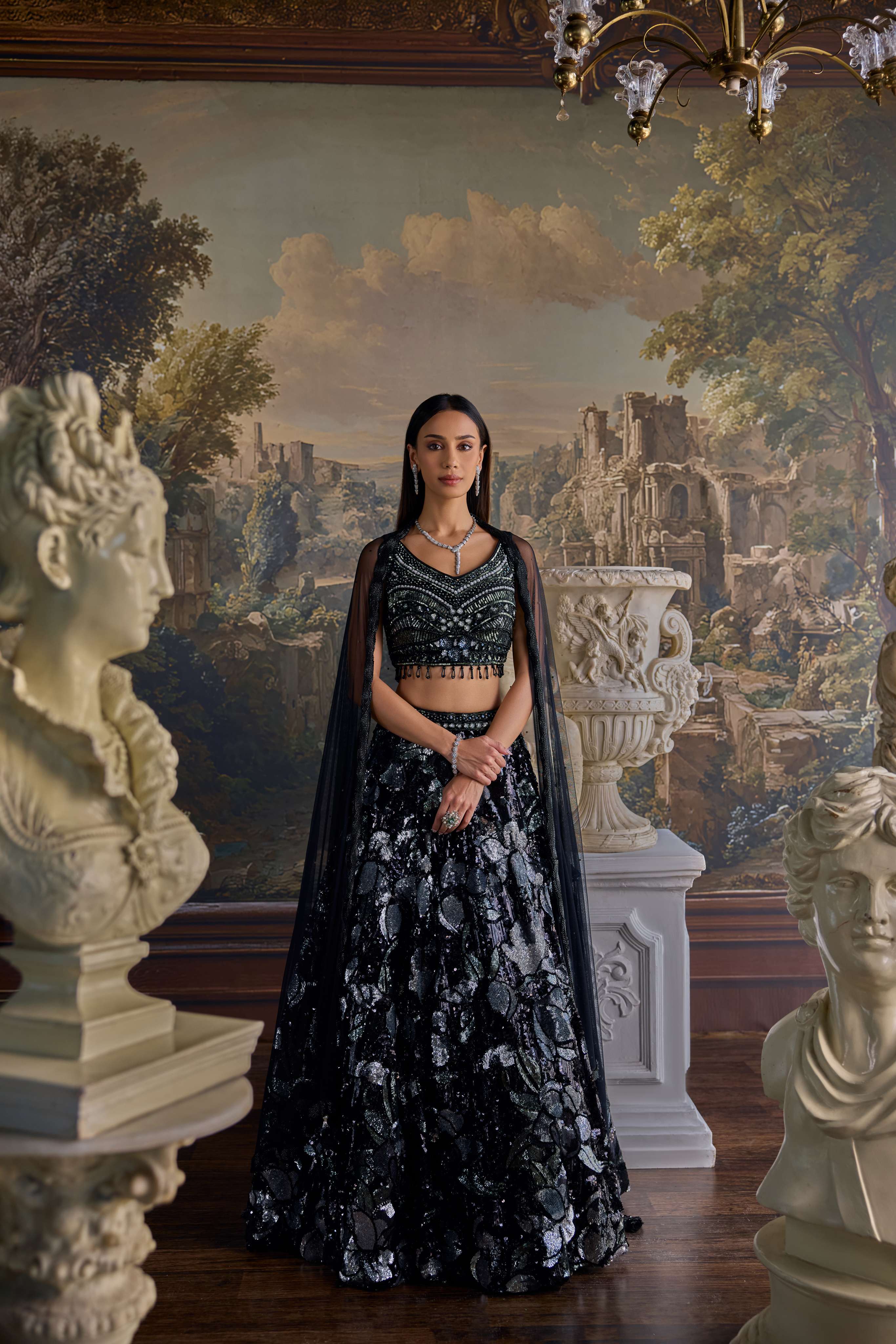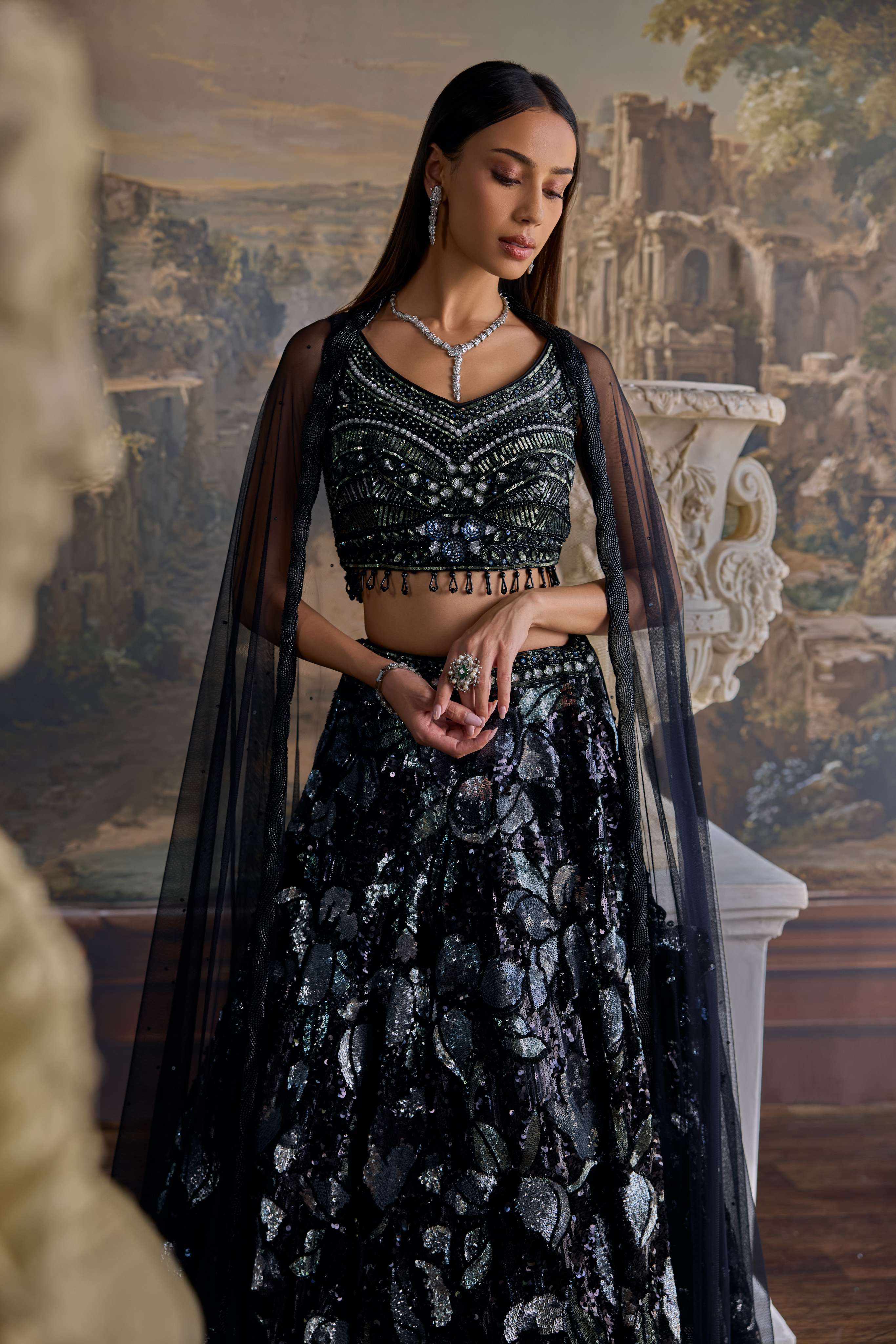 Black Net Sequins Work Ghagra Set