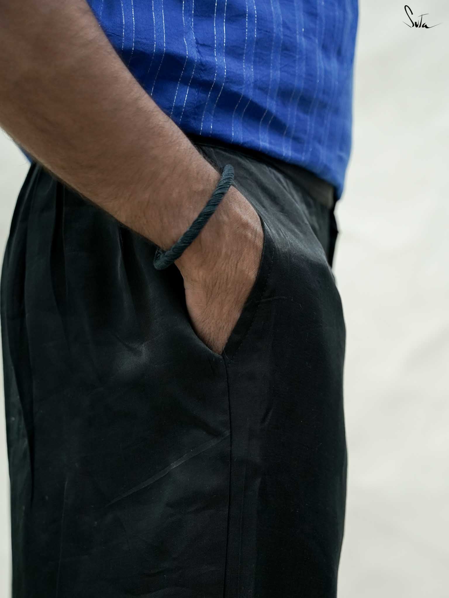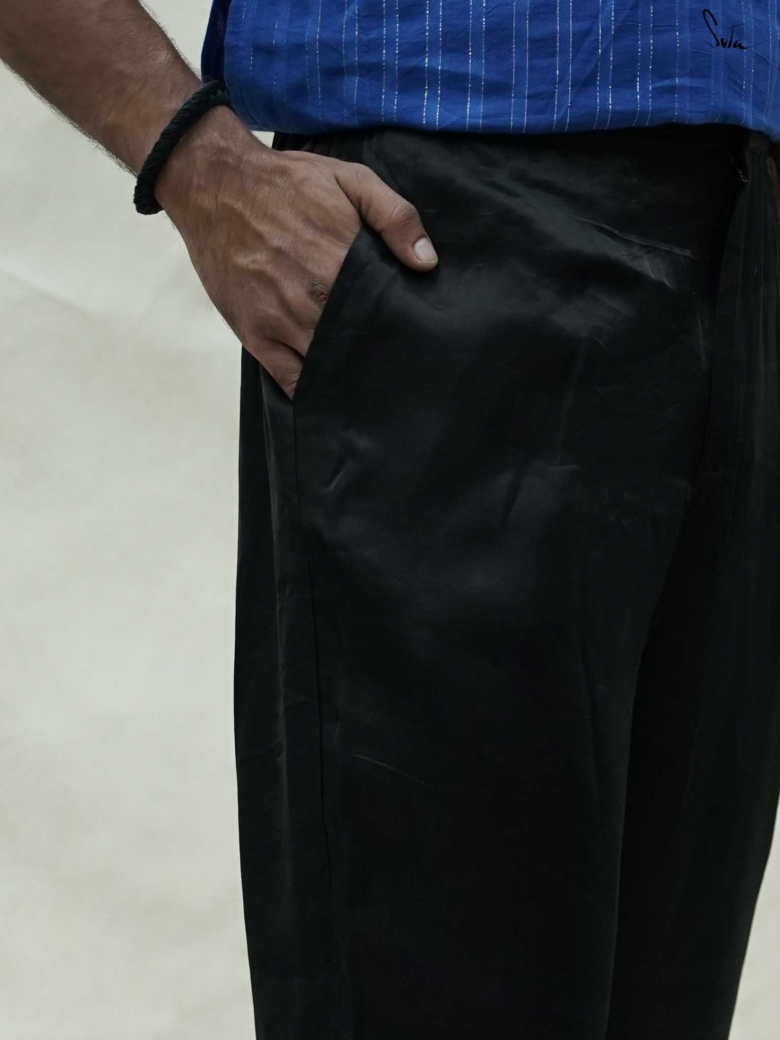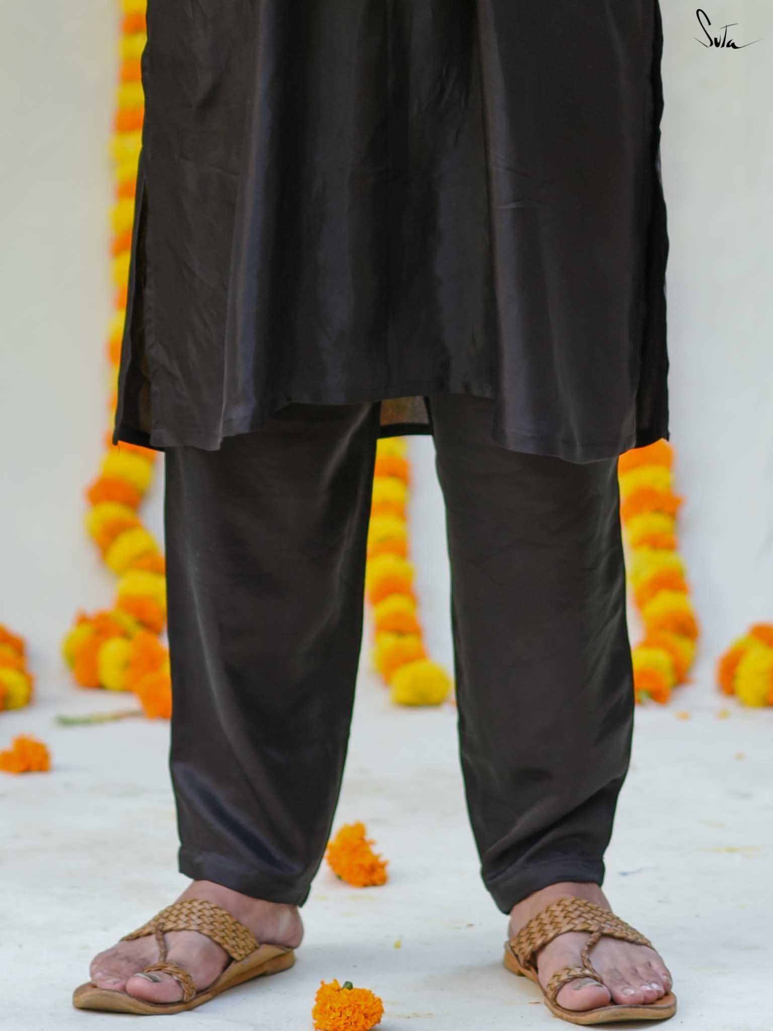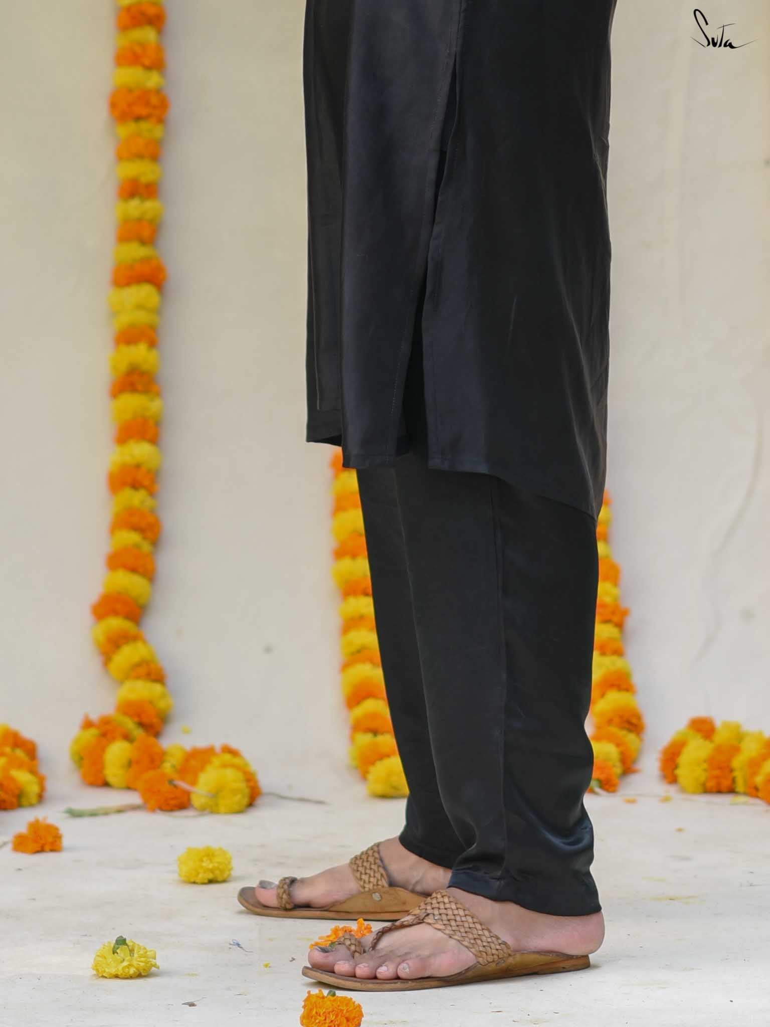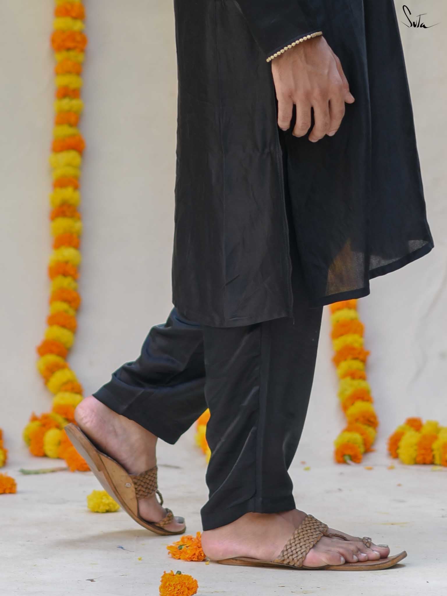 Introducing the Black Saaya Kurta, a stunning viscose blend piece that exudes sophistication and elegance. With its straight fit and two pleats, this kurta drapes beautifully, making it perfect for festive evenings. The classic black hue serves as a versatile canvas for accessorizing, allowing you to express your unique style while celebrating the warmth of togetherness.