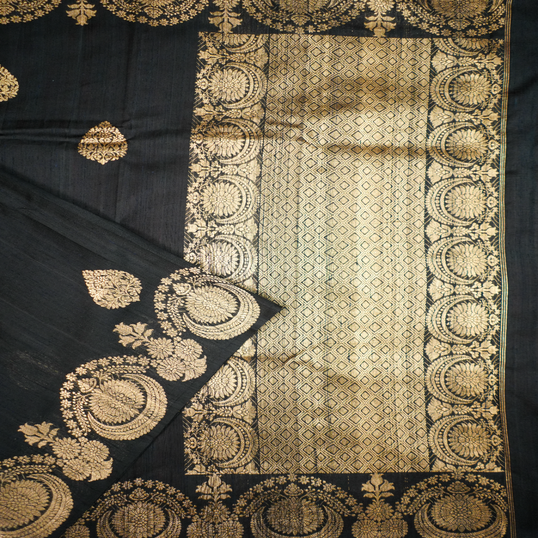 Black Tussar Handloom Jewellery Border All Over Buttas Saree