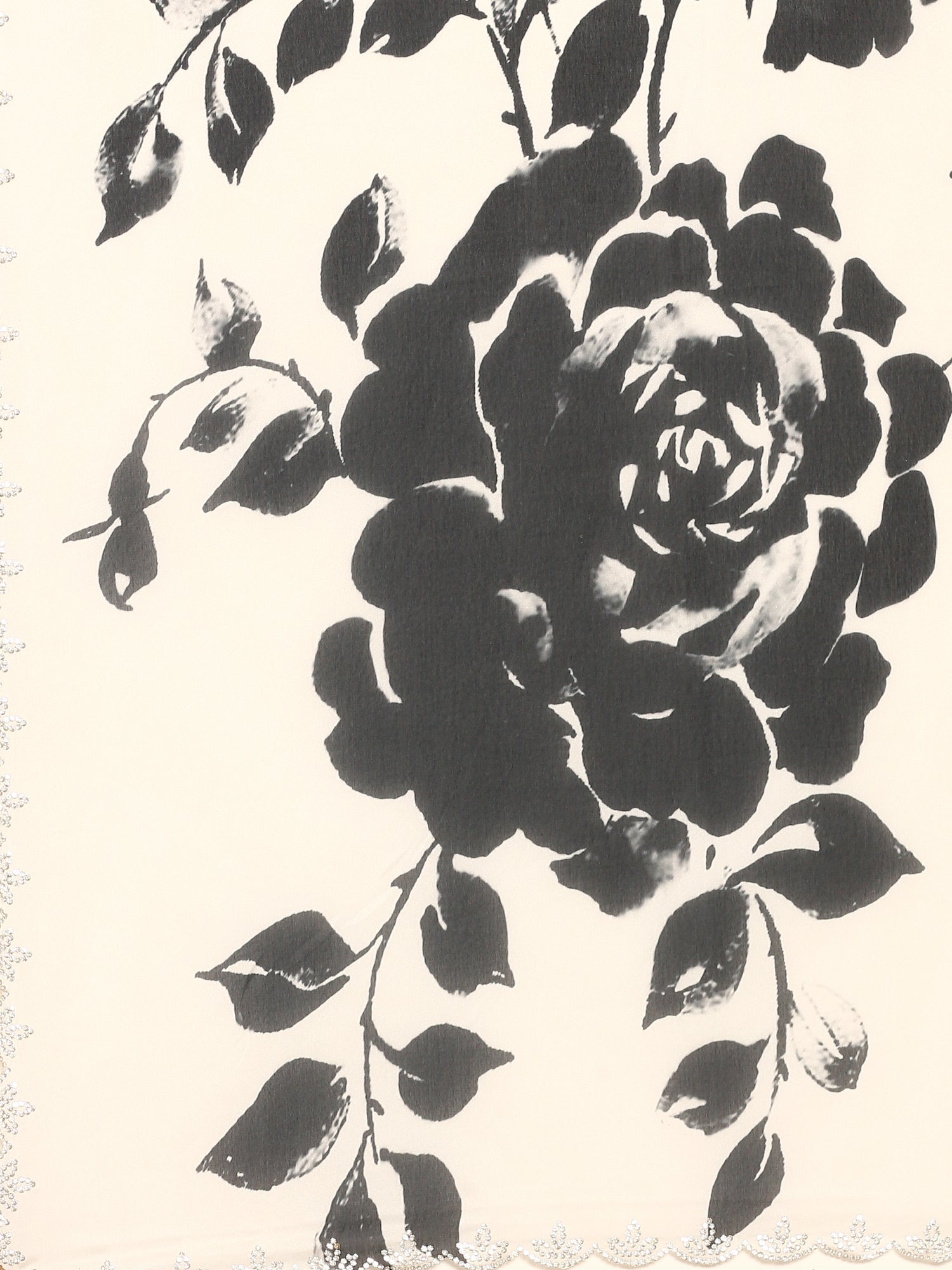 This black and white floral printed satin saree combines elegance with a touch of sparkle through exquisite Swarovski embroidery. The smooth satin fabric ensures a graceful drape, while the delicate floral pattern adds timeless charm. Perfect for special occasions, this saree offers both comfort and style, making you feel confident and