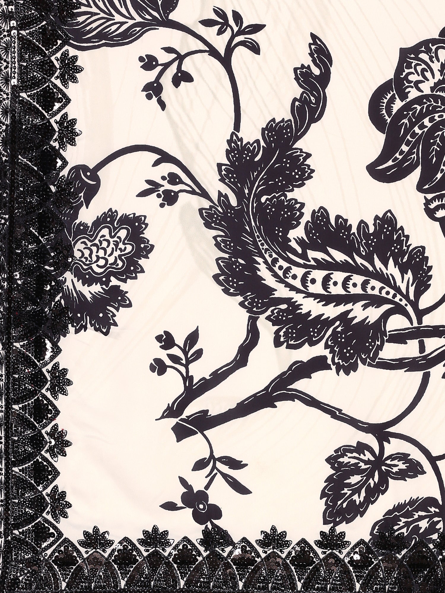 Black & white satin printed saree with hand embroidery & ready made blouse