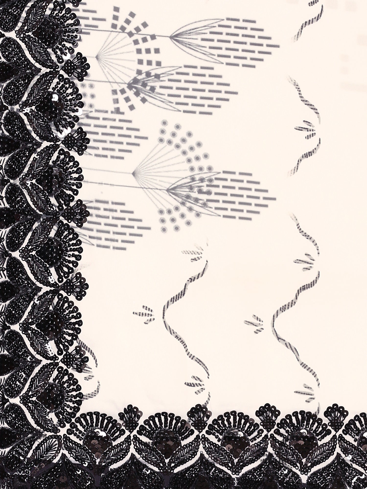 Black & white satin printed saree with hand embroidery & ready made blouse