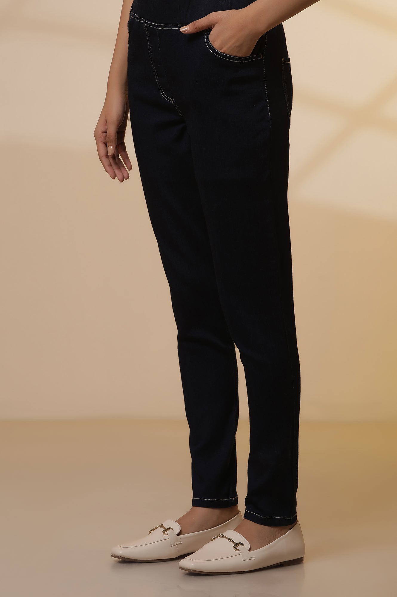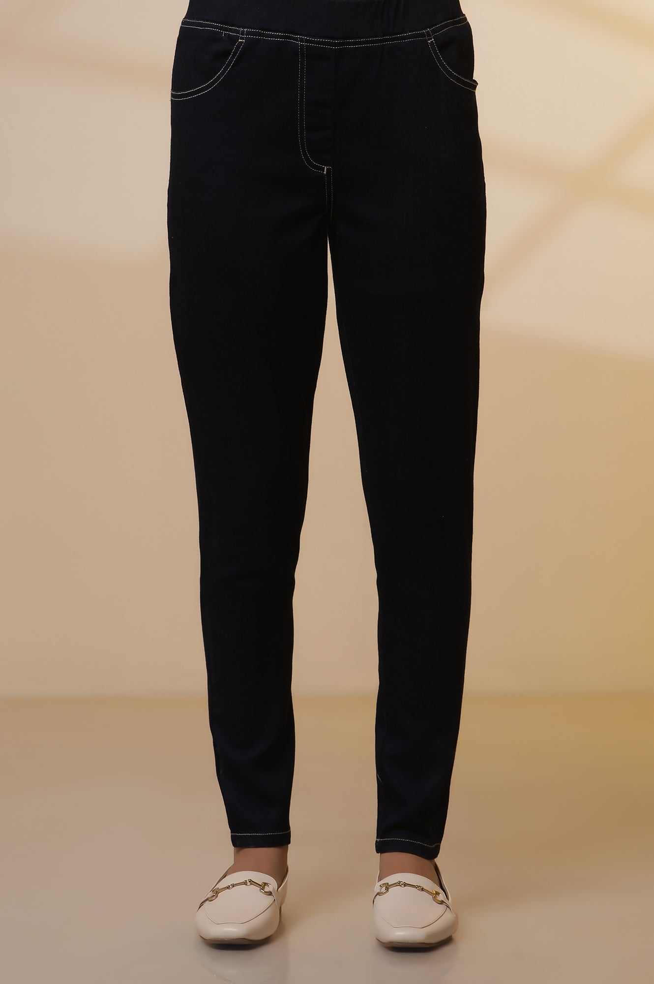 Elevate your style with our yarn dyed crepe kurta. It features a stylish shirt collar, a convenient slit pocket, and elegant cuff details on the sleeves. The kurta is paired with denim jeggings. This look combines sophistication and functionality.