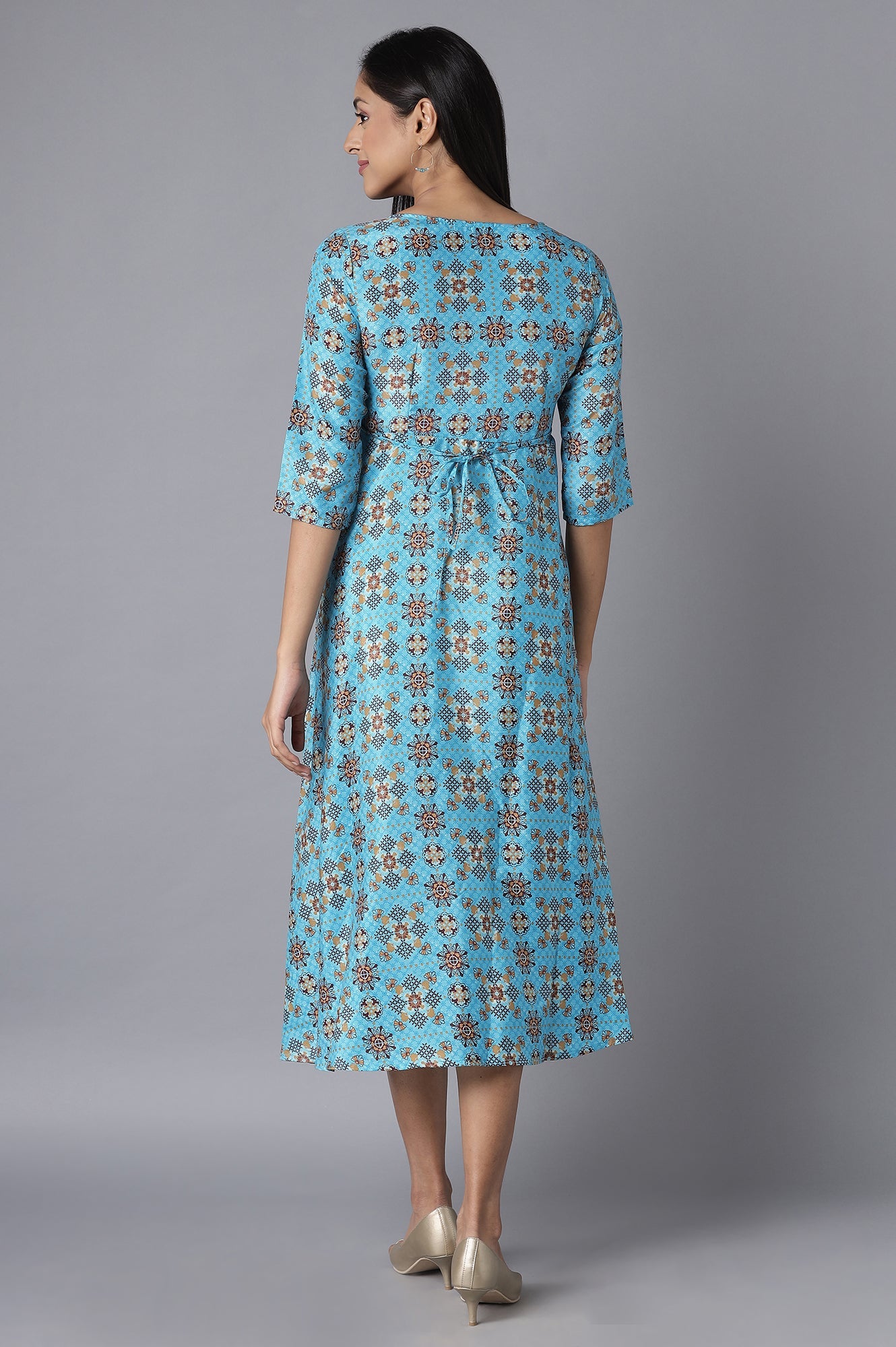 Blend into festivities with this elegant and ethnic dress. With this dress you can pull of that runway look you've been waiting for. Crafted in premium quality poly shantung, it features A-line silhouette and dori at back. The authentic floral print pattern makes the piece a must-have addition for the wardrobe.