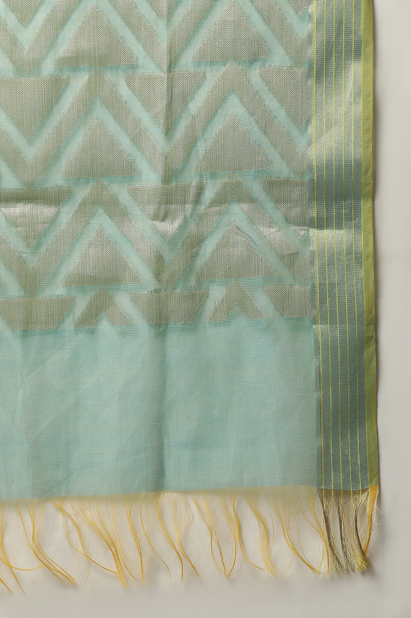 Blue Flared Anarkali Kurta, Tights and Jacquard Dupatta