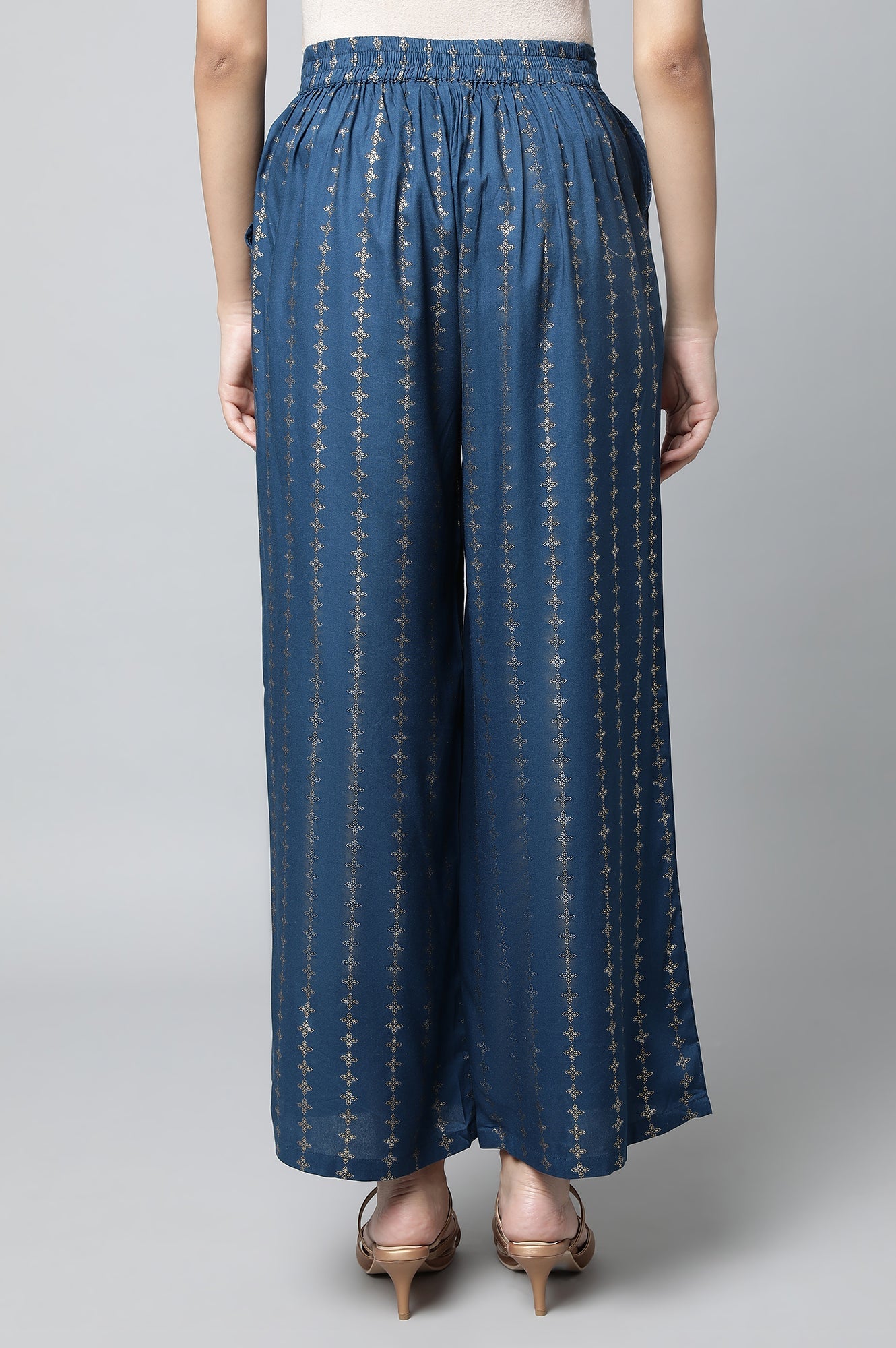 Blue Floral Foil Printed Palazzo