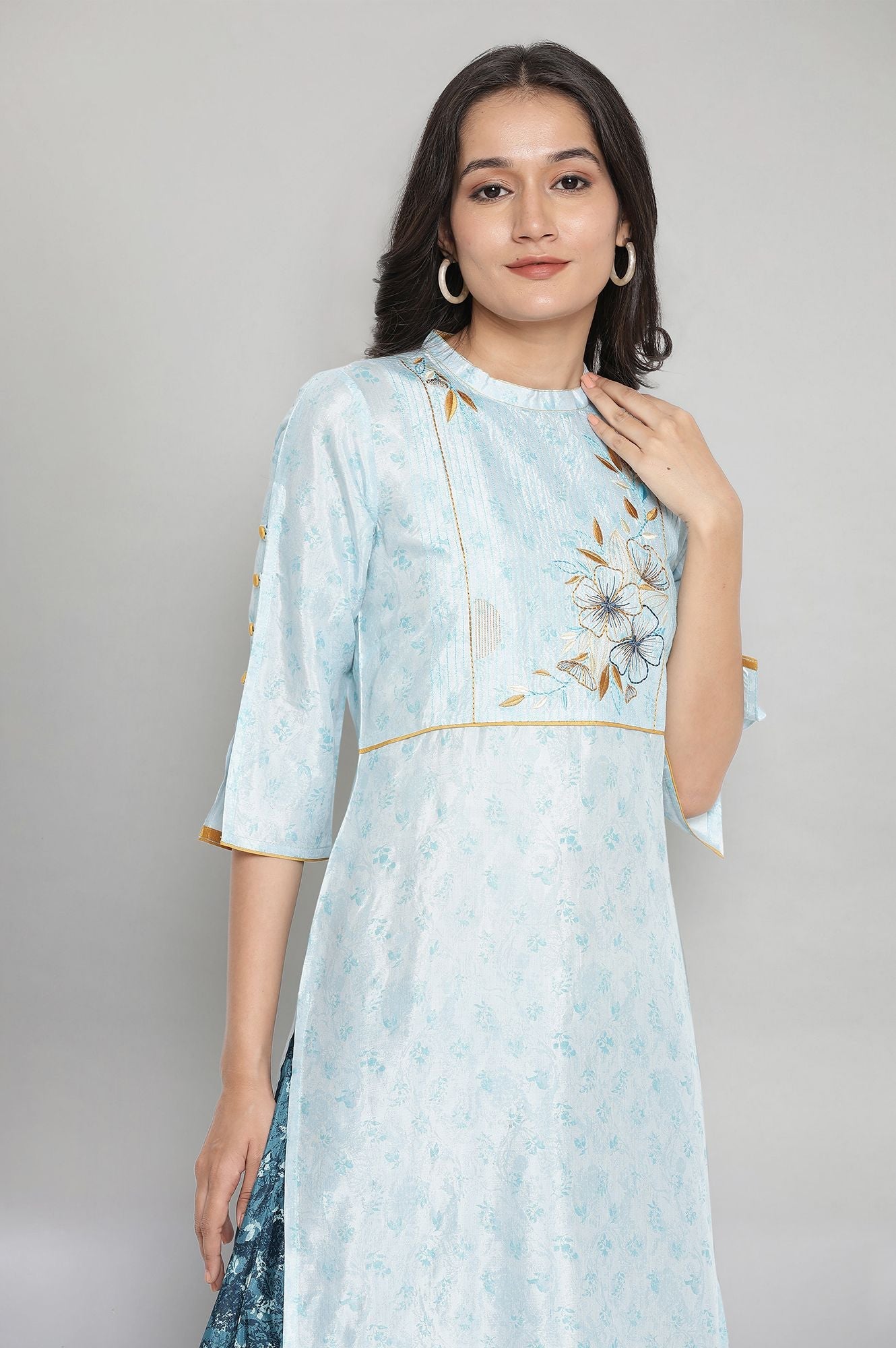 This classy and elegant kurta can be your top pick for a casual and stylish look. It is crafted in poly shantung fabric and has straight silhouette. The kurta also features mandarin collar and back button closure.
