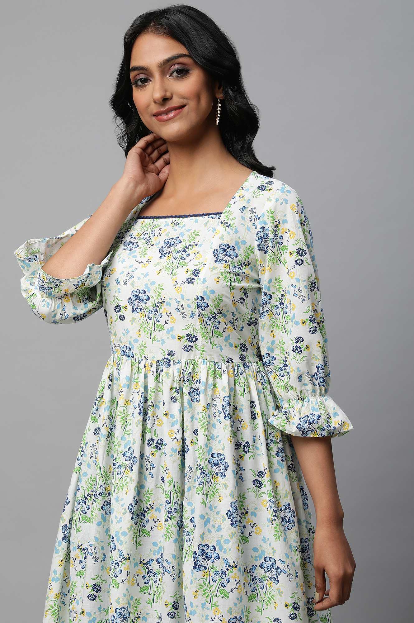 An Easy-Wearing kurta In A Breezy Floral Print Made With 100% Cotton. It Features A Square Neckline Adorned With Subtle Lace Detail And A Little Pop Of Style On The Sleeves. Throw It On With Our Super Soft Contrasting Colour Tights Or Carry It As It Is.