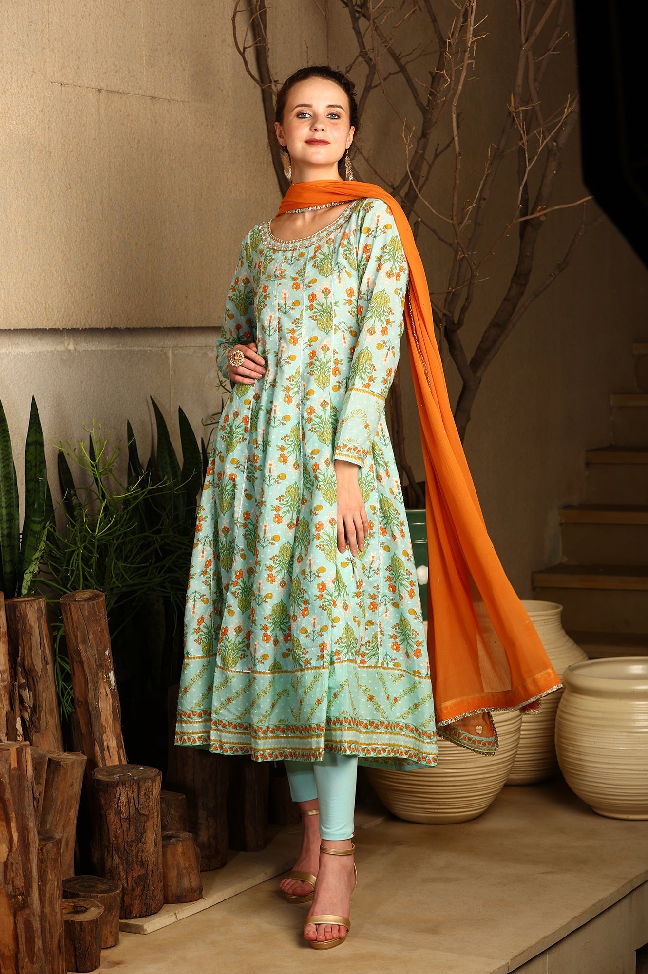 Embrace refined elegance with this blue floral-printed panelled Chanderi kurta, a stunning choice for any special occasion. The kurta features a delicate floral print set against the luxurious texture of Chanderi fabric, enhanced by intricate embellishments that add a touch of sophistication. Its panelled design creates a graceful, flowing silhouette, while the coordinating tights ensure a sleek and comfortable fit. Completing the look is a matching dupatta that drapes elegantly, adding a final layer of charm to this beautifully crafted set. Perfect for celebrations and formal events, this ensemble blends vibrant Colour, intricate detailing, and classic style with effortless ease.