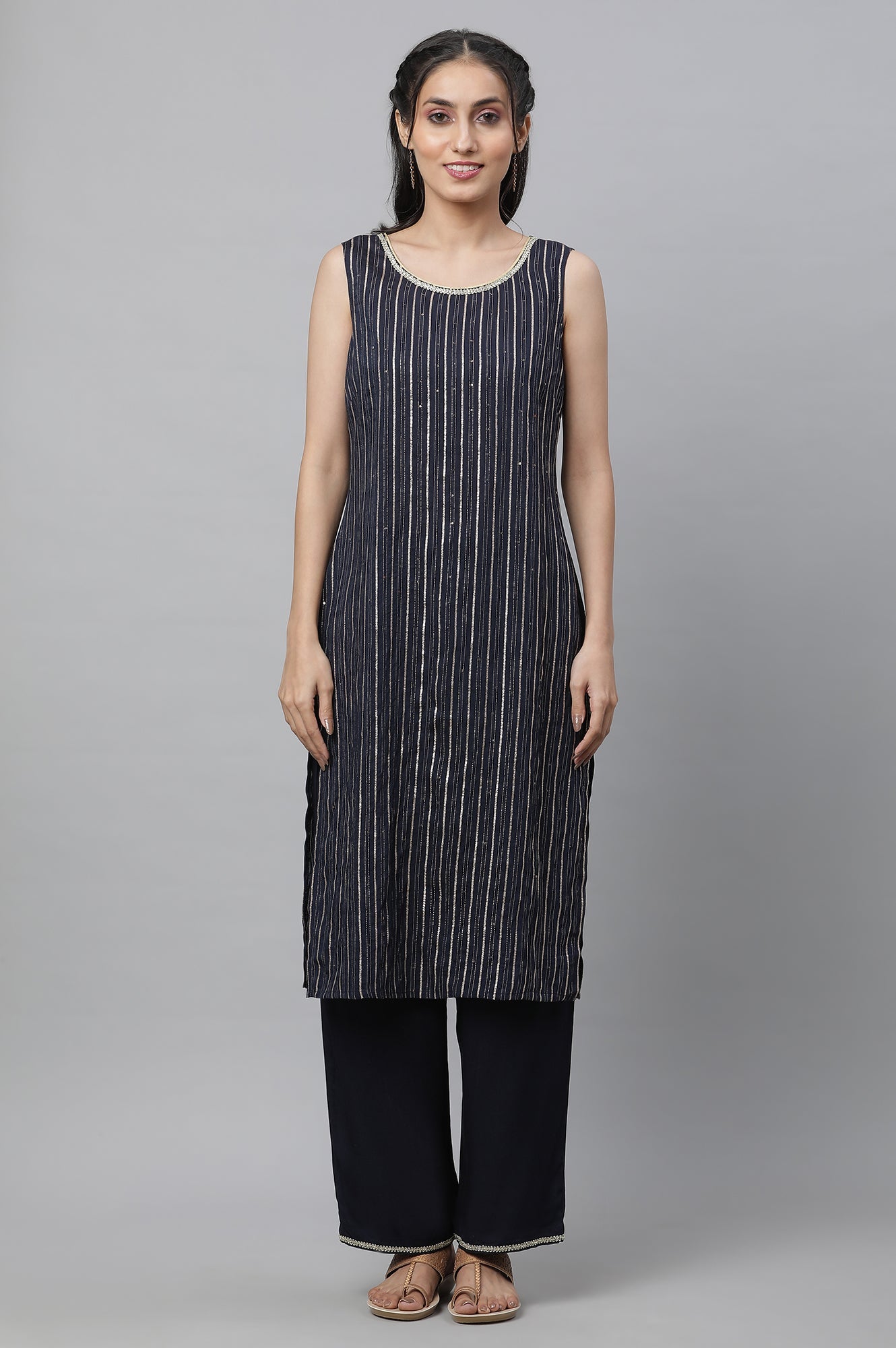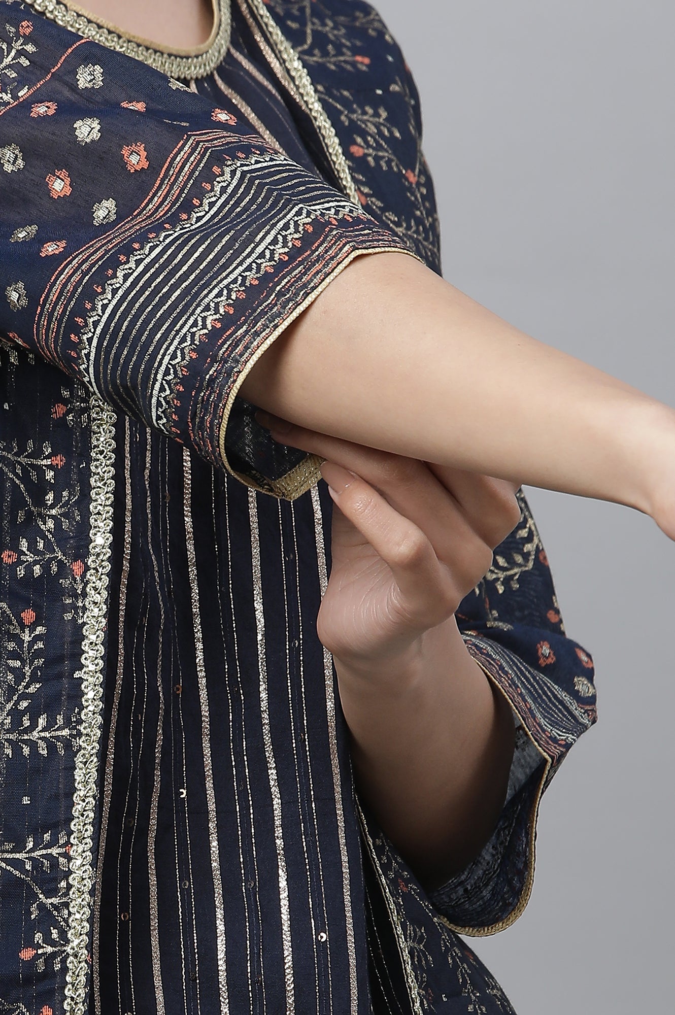 Blue Gilet, Kurta and Narrow Palazzo Festive Set