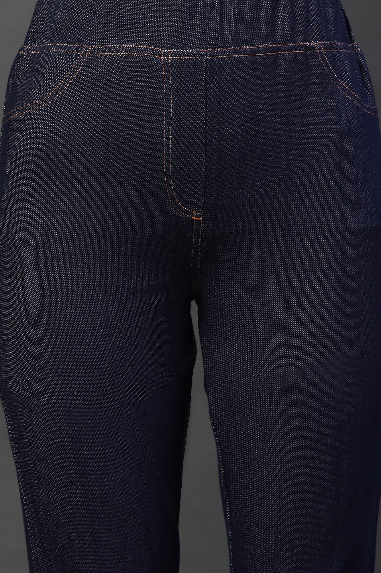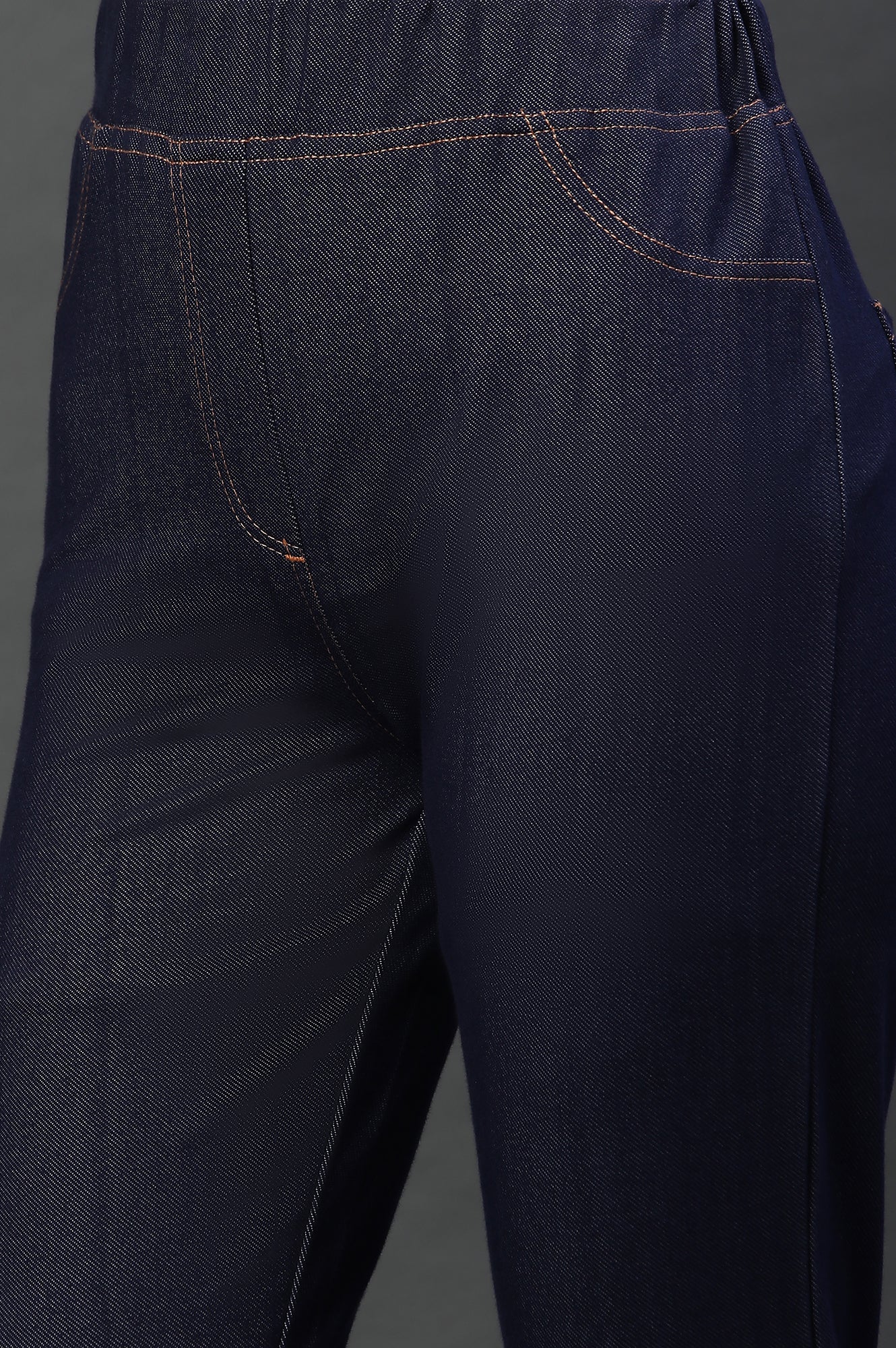 These twill knit jeggings offer a flattering fit, provides great stretchability for easy movement and adds comfort while wearing. With four pockets, and contrast stitch lines, it gives a modern and trendy look, making it a versatile piece in any wardrobe."
