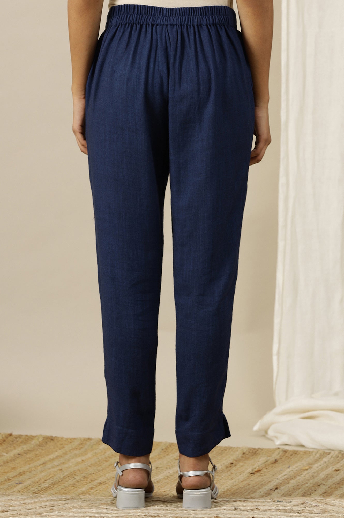 Blue Solid Rayon Flax Comfy Trousers with Pockets