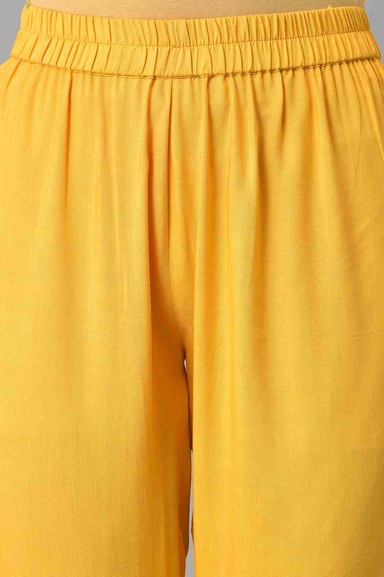 Treat Yourself With This Stylish Ensemble. It Comes With A Kurta With A Unique Placement Embroidery, Paired With Contrasting Colour Cotton Trousers And A Contrast Printed Georgette Dupatta.