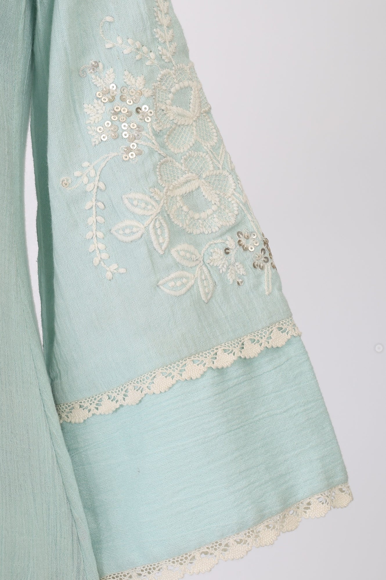 Crafted in pure cotton, this blue thread embroidered kurta set brings effortless charm to your casual and work wardrobes. The straight silhouette features a classic keyhole neckline, three-quarter sleeves, and subtle side slits for comfortable movement. Paired with crisp white straight pants and a matching dupatta, this traditional wear ensemble offers an elegant, breathable option for warm days. The intricate thread work adds a refined touch to the soft fabric, making this ethnic wear for women an ideal choice for smart casual outings or office wear.