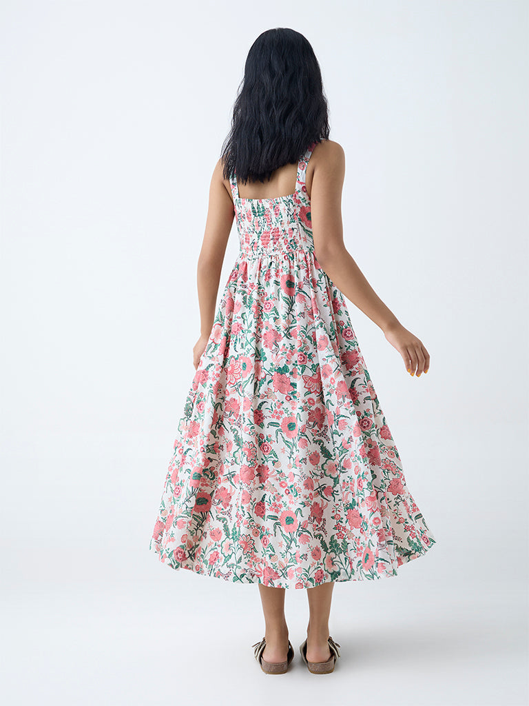 Shaped in A-line dress silhouette, this multicolour dress from Bombay Paisley brings a burst of vibrance with its lively floral print. Created from a rich cotton-blend fabric that offers enhanced breathability, it includes a square neck and adjustable shoulder straps for ease and balance. A concealed back zipper finishes the look with a tailored touch.