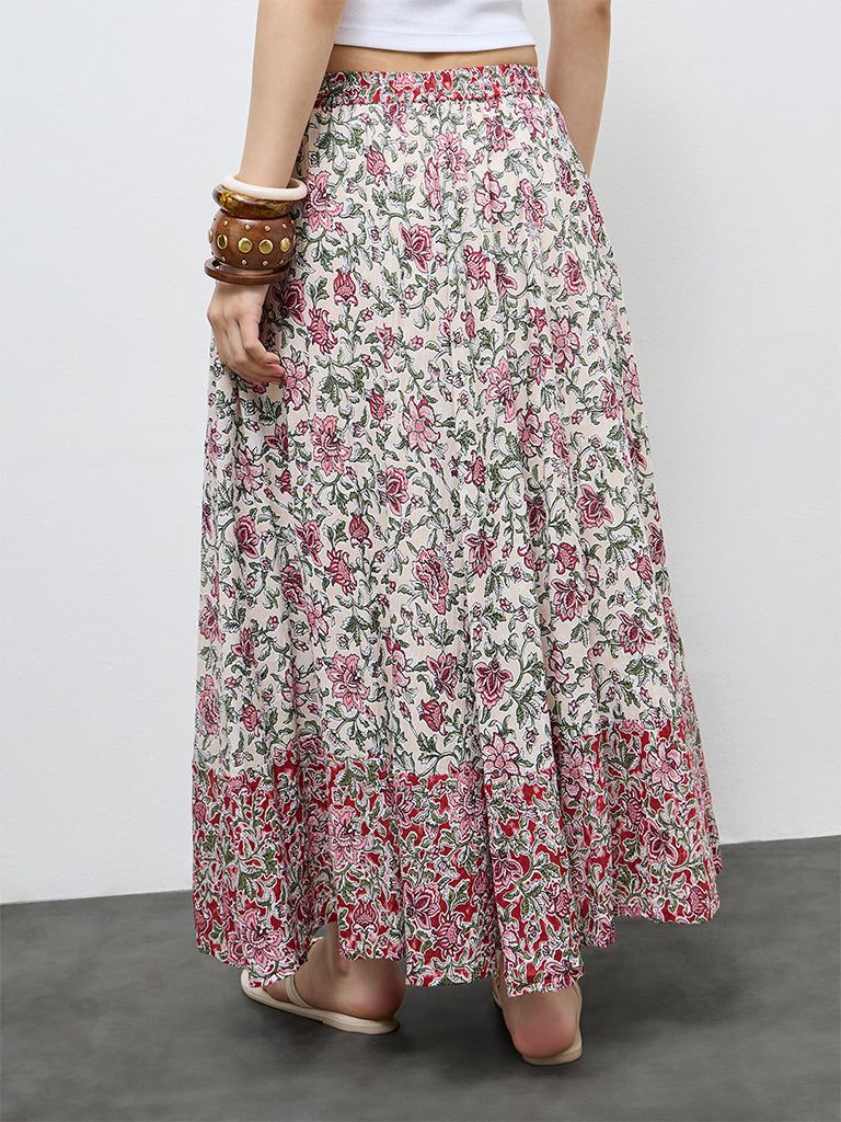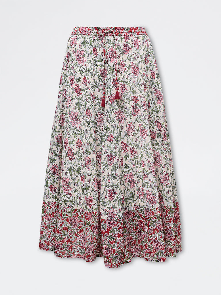 Bombay Paisley Off-White Floral Cotton Skirt