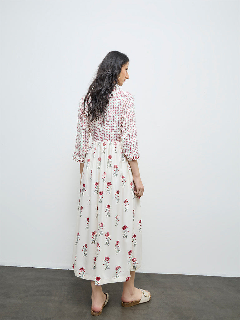 Bombay Paisley Off-White Floral Empire-Line Dress