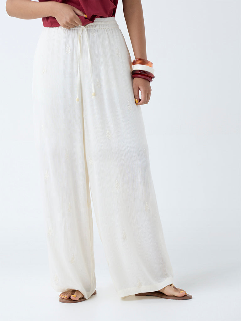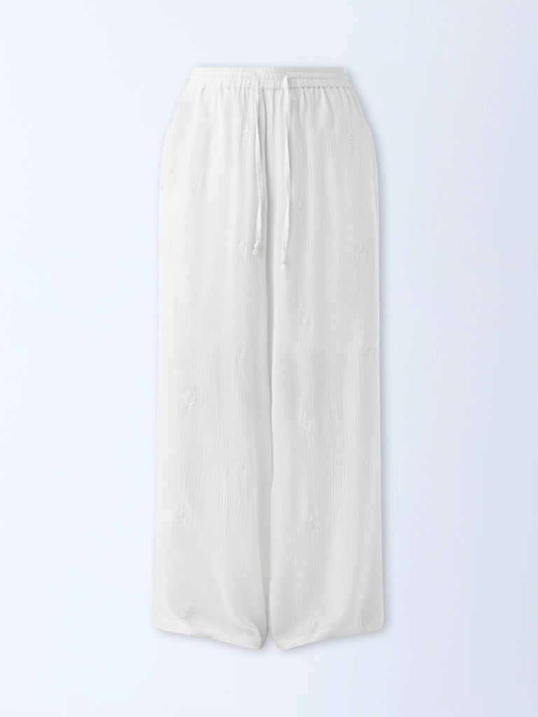 Bombay Paisley White Crinkle-Textured Pants