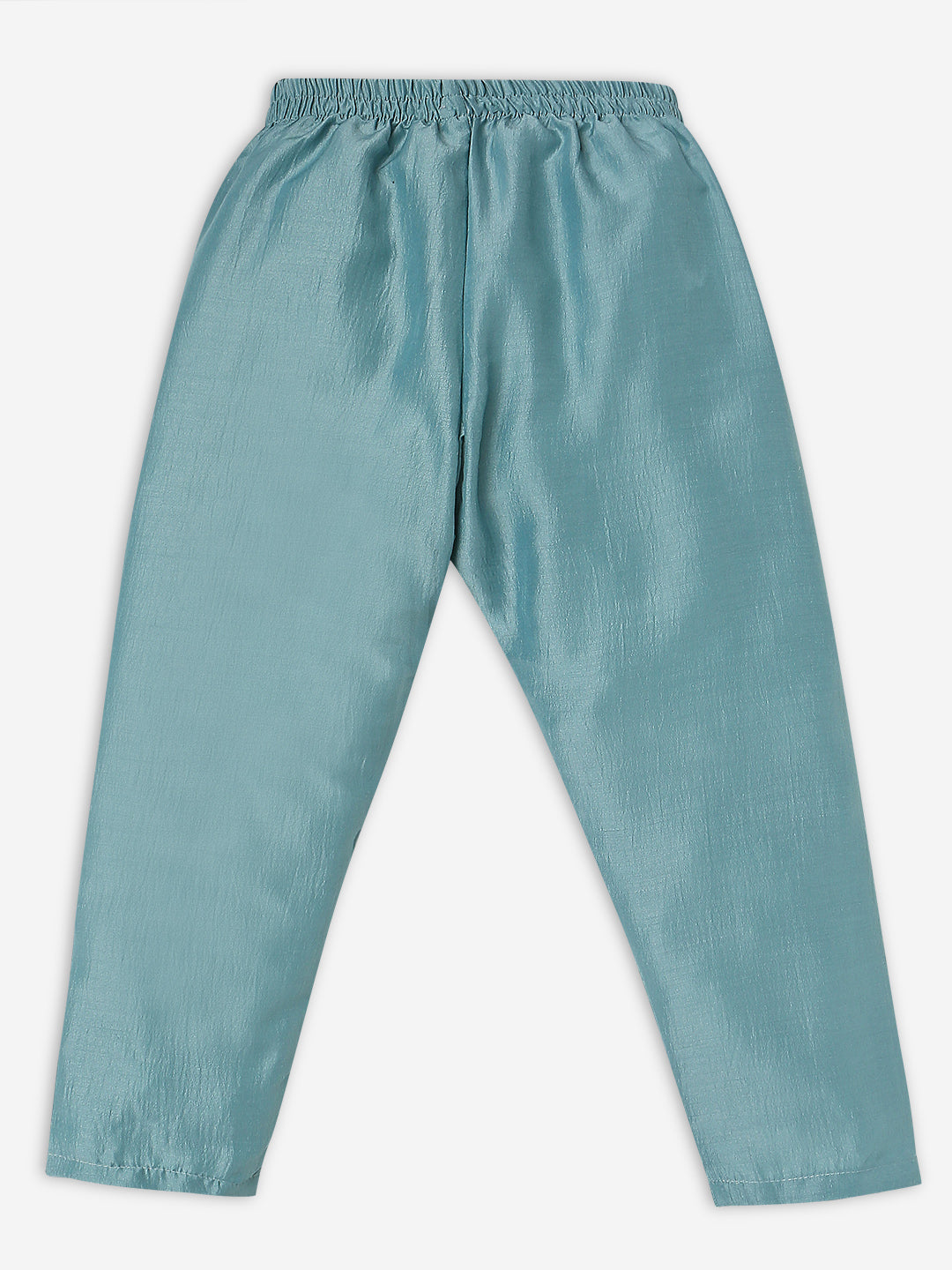 These printed pattern kurta with pant set has mandarin collar and full sleeve. Made from polyester, your kid's feel comfortable wearing the product.